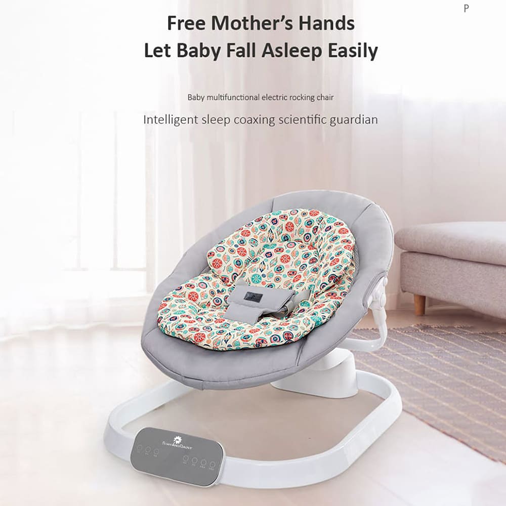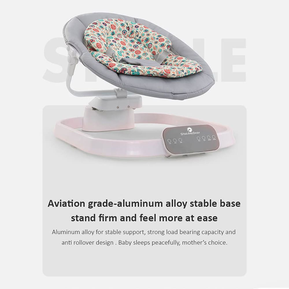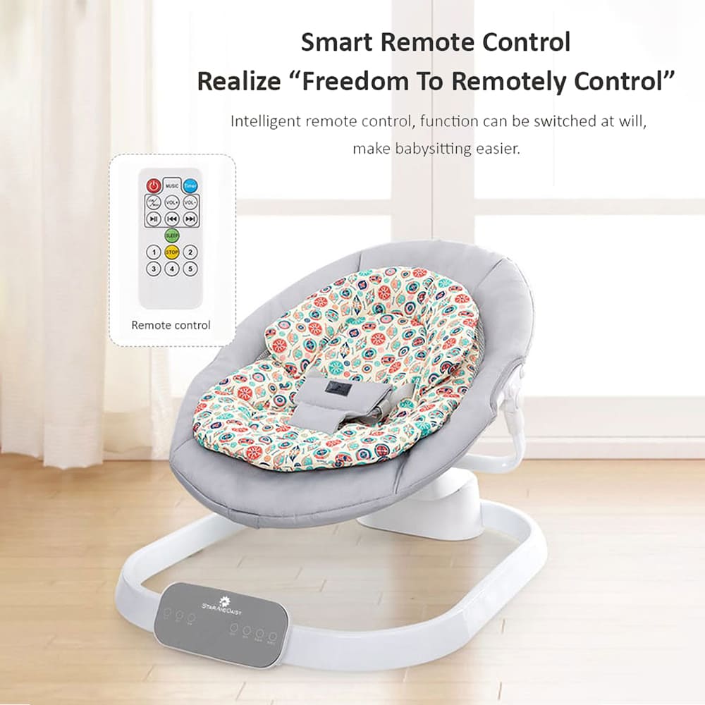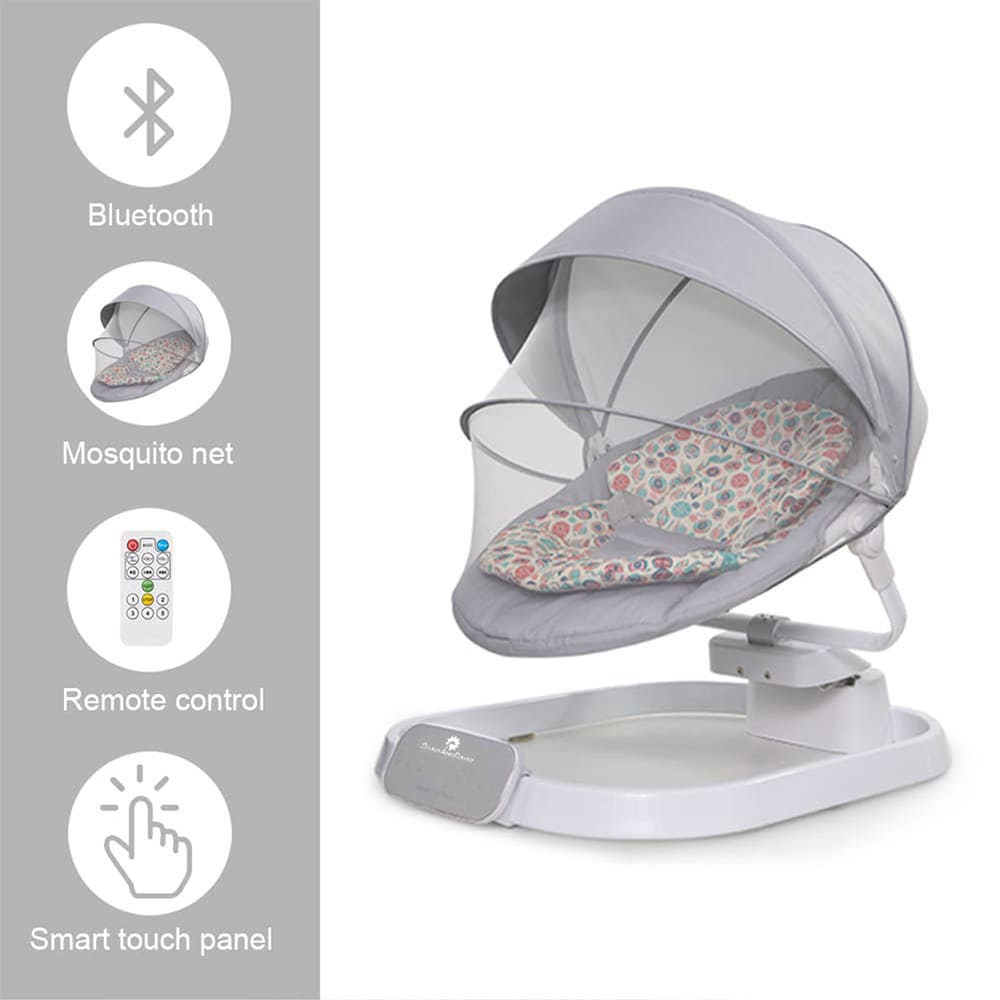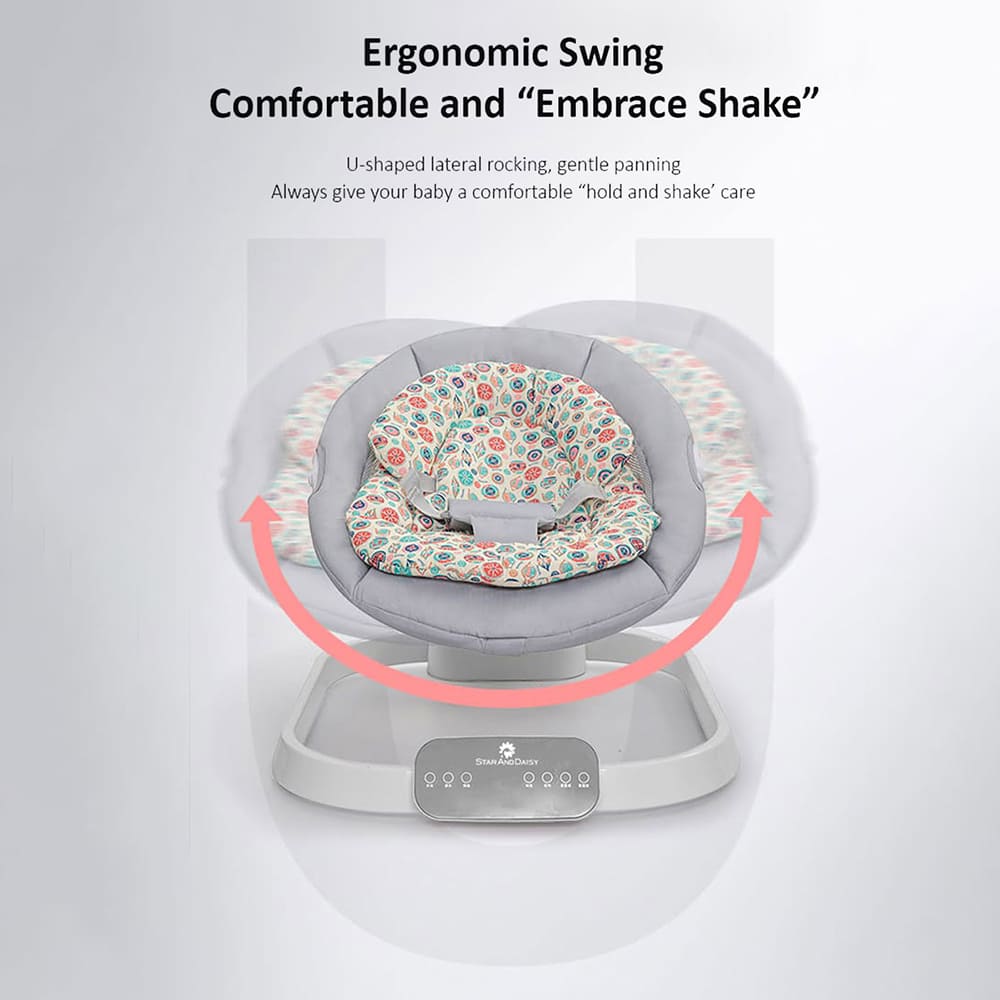 StarAndDaisy Automatic Electric Baby Rocker Bouncer and Swings – Baby Swings for Infants with 5 Speeds Swings, Bluetooth Music Baby Bouncer with Remote Control for 2-10 kg, 0-18 Months, Dining Tray, Mosquito net and Urine mat (Grey)
