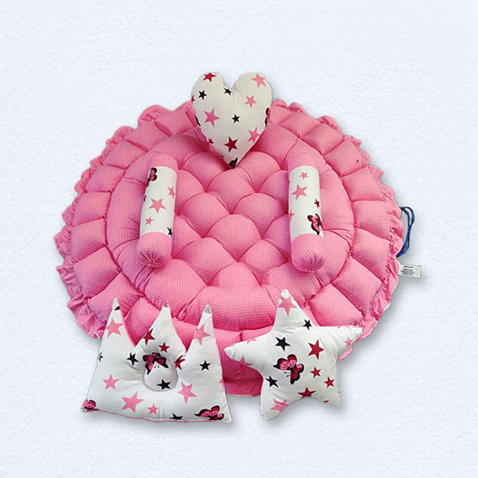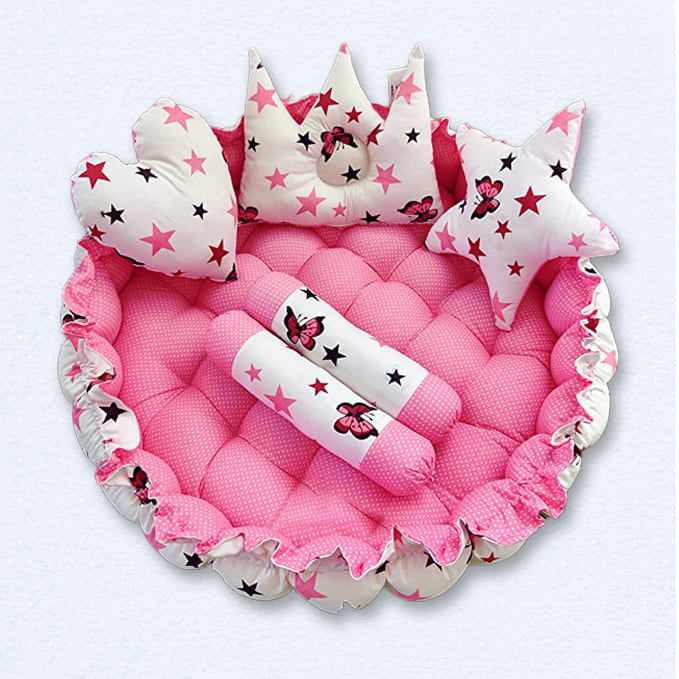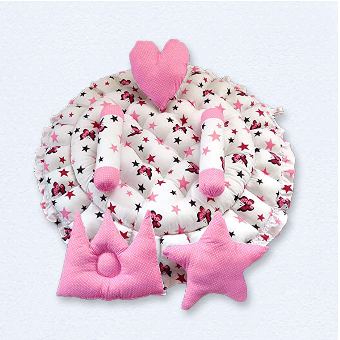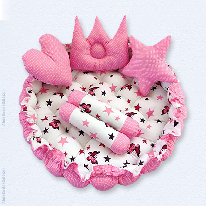 StarAndDaisy Round Baby Tub Bed With 5 Baby Pillows – Luxury Baby Sleeping Bedding Set for Newborn to Toddlers – Pink and White