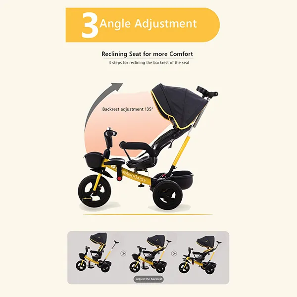 - 2 in 1: It can be used as a stroller and the back push handle can be used to drive it and change the directions. The back push handle can enable you to drive and direct the tricycle and use it as a stroller.