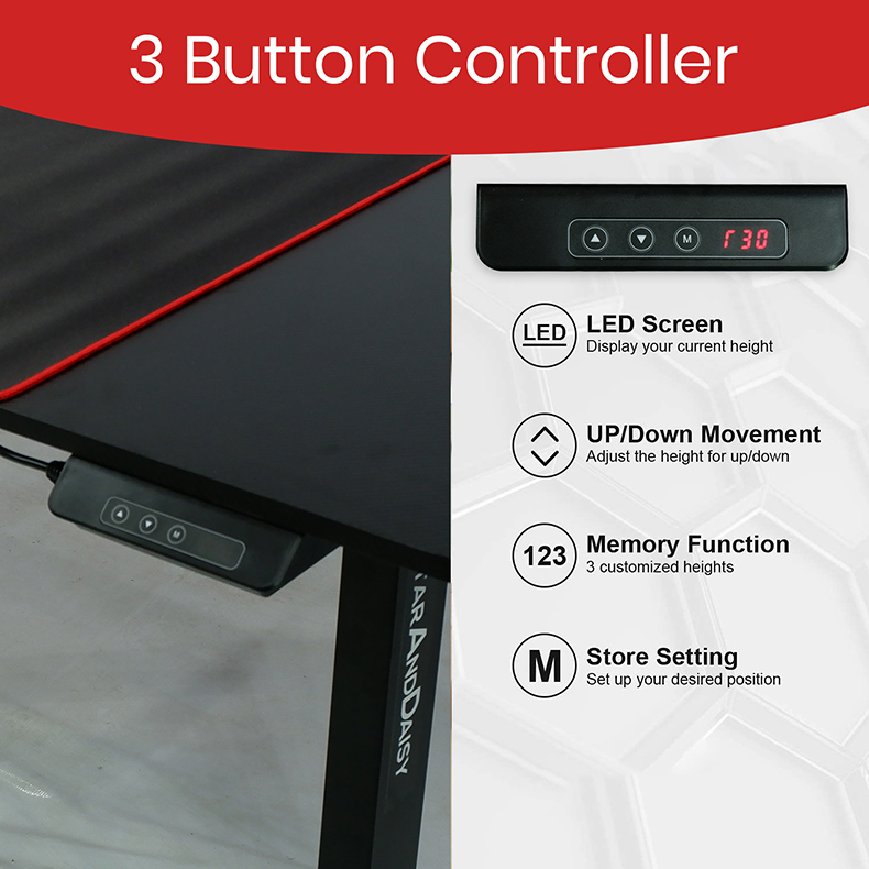 DIGITAL DISPALY AND MEMORY PRESET CONTROLLER: You can press the push button of the digital display controller to adjust the desk height and see the height value displayed. The controller features 3 memory presets to help you save your ideal height. USB port at right side of the controller provides a convenient charging function for your electronic equipments such as phones and ipads.