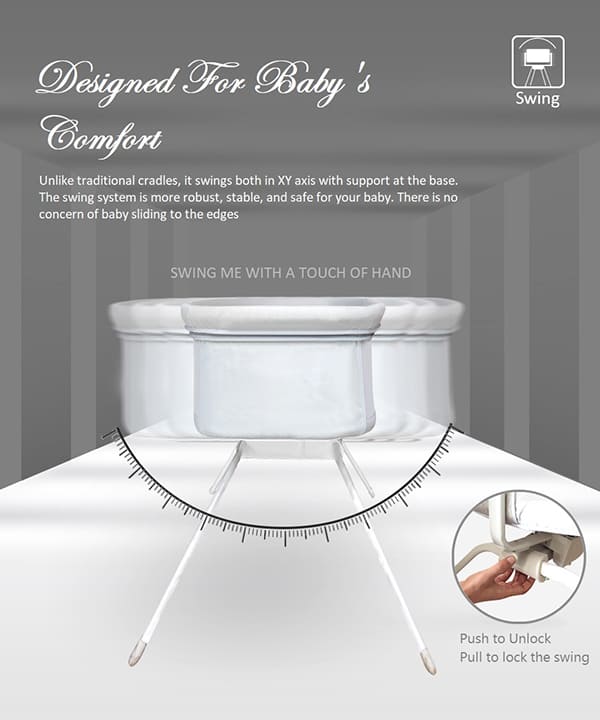 StarAndDaisy Slider Swing Baby Touch Cradle with double bearing XY axis patented swing technology for newborn baby 0-18 months (Dark Grey)