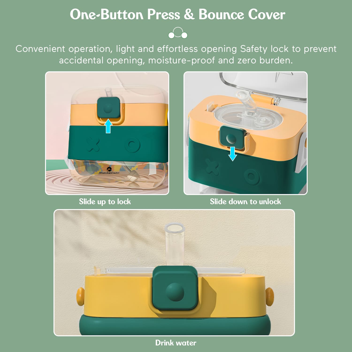 StarAndDaisy Square Water Bottle Sport Cup Drinks Bottle with Straw, Lock Cover & Leak Proof, Water Bottle, Large Sports Water Jug Cute Bottle, Square Drinking Bottle (Green & Yellow)