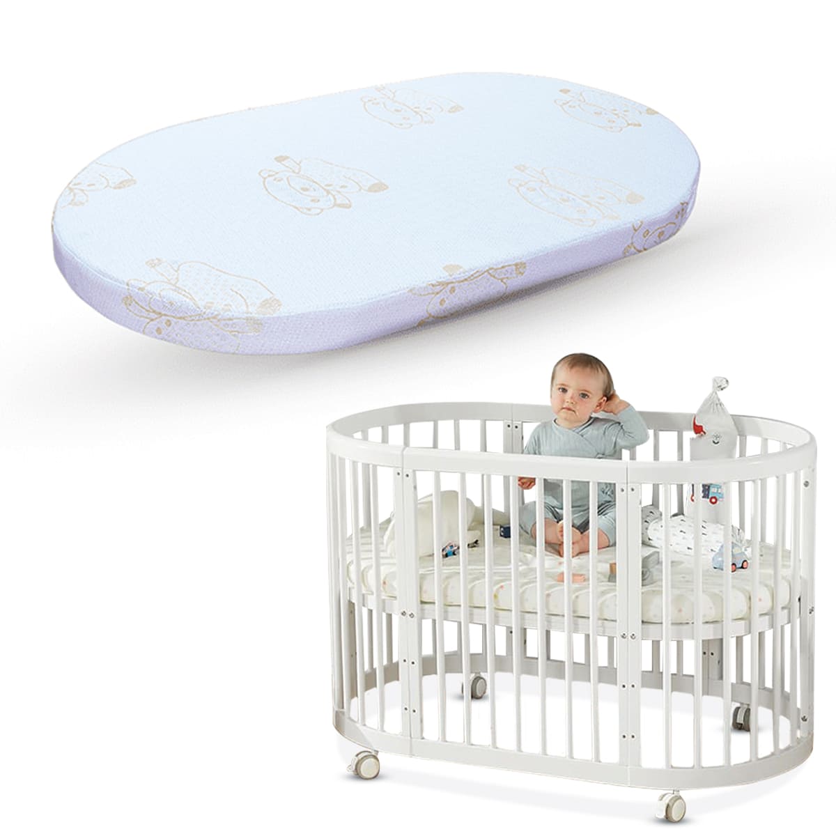 StarAndDaisy Supersoft Mattress For Babies With Washable Zipper Cover For StarAndDaisy Multi-functional 6 in 1 Wooden Cot Crib For Baby / Infant / Kids, Small round bed, Crib, Nursing Table, Round Convertible Bed, Table and Chair and more