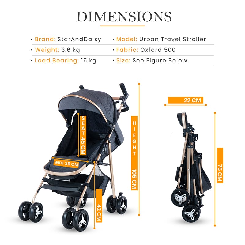 StarAndDaisy Urban Travel-Freindly Lightweight Easy Fold Compact Travel Baby & Kids Stroller, Pram & Buggy, Pushchair for mom on Wheels (Black)