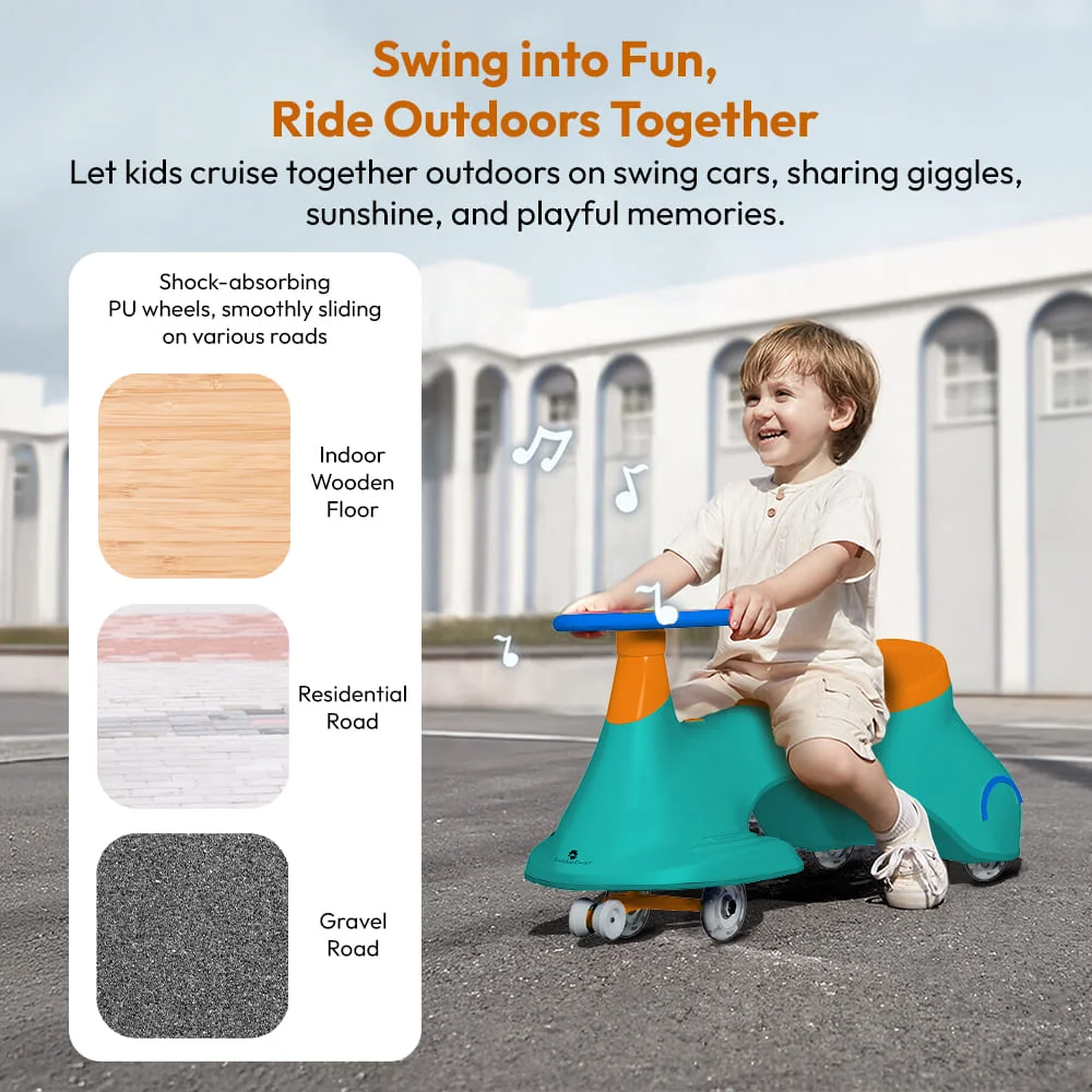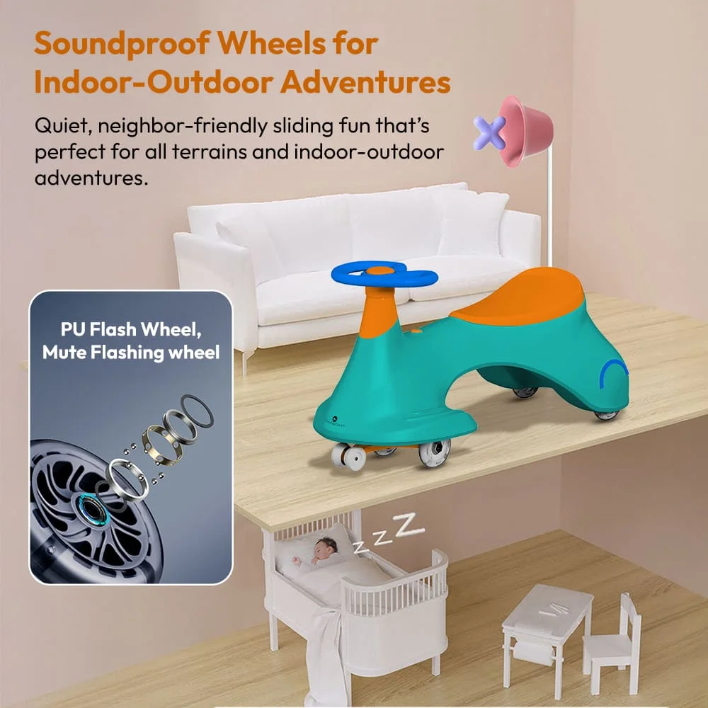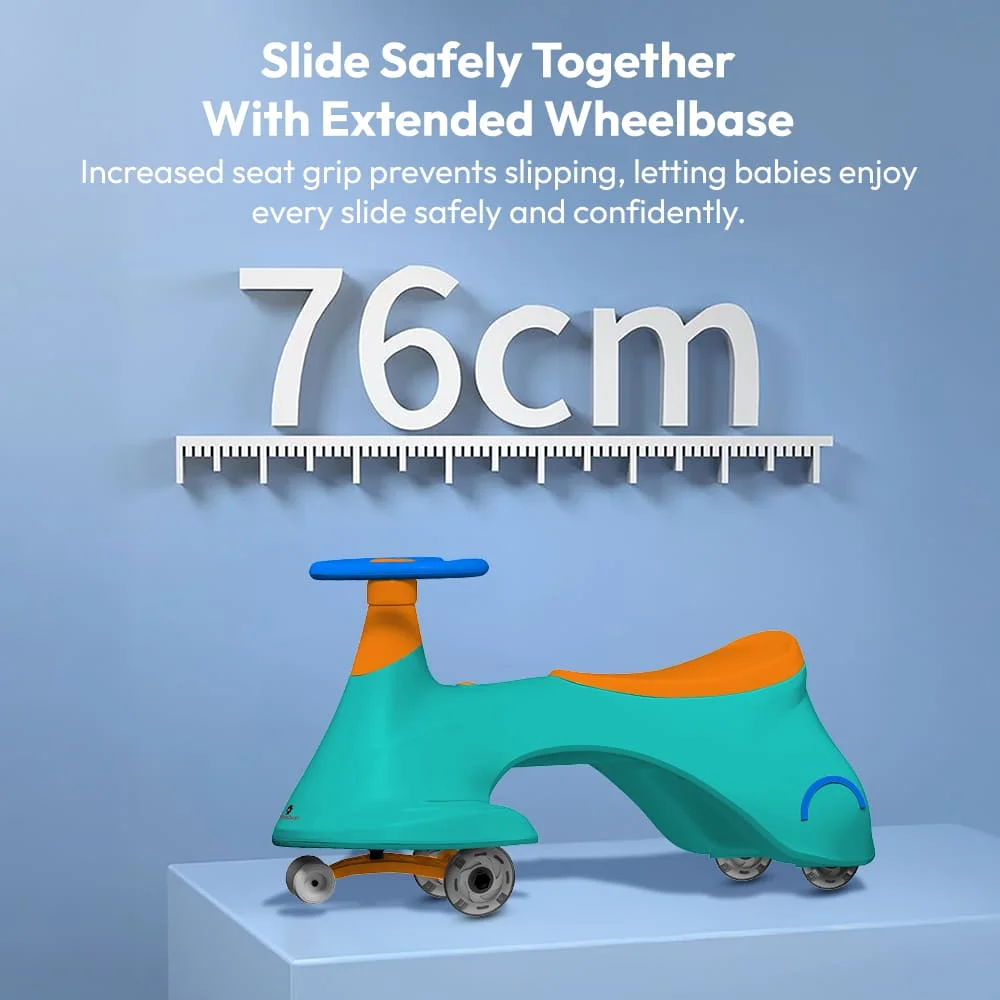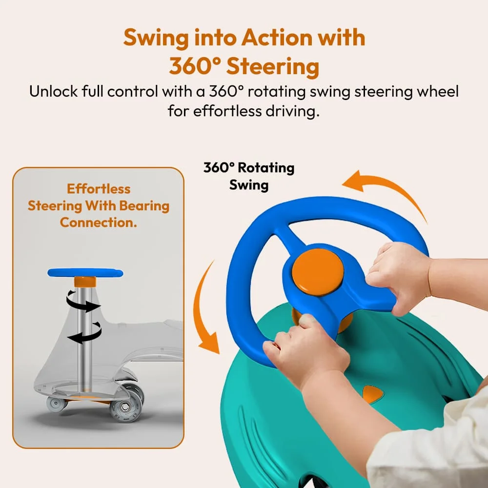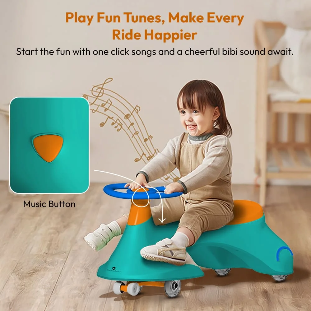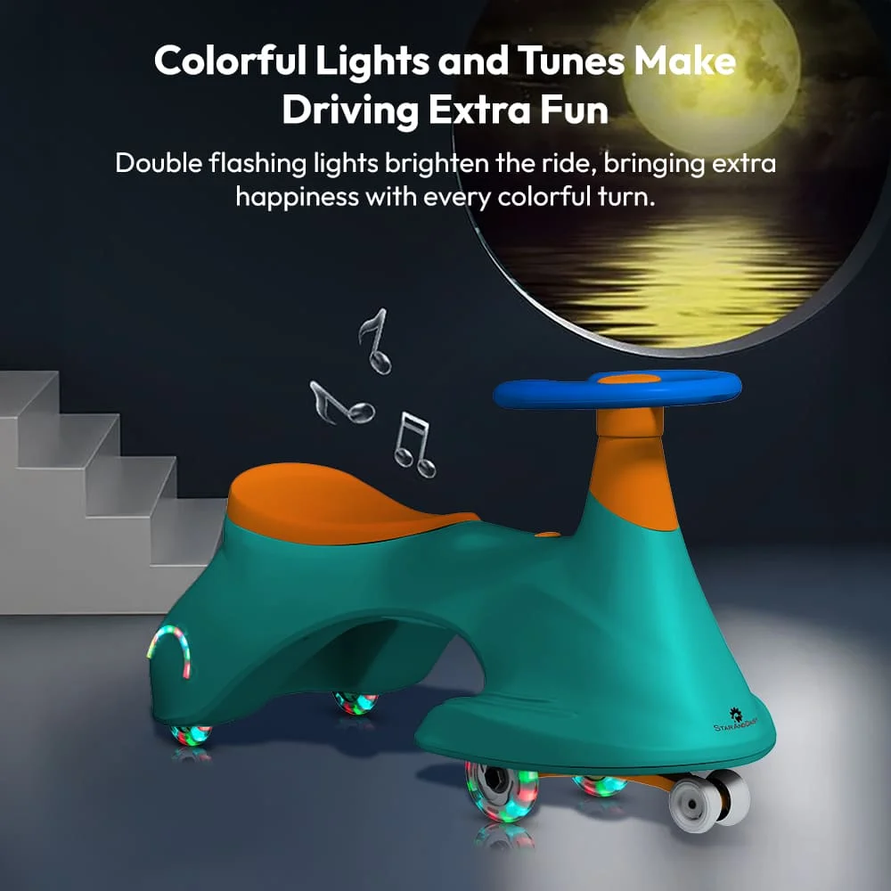 StarAndDaisy Kids Wiggle Car / Swing car for kids 24 months and above, LED Illuminated Wheel with Music (Green Orange)