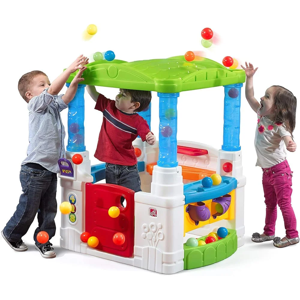 With thoughtful features like a Dutch-style door, a pass-through mailbox, and an open concept design, the Wonder Ball Fun House combines imaginative play with hands-on activity. The bright colors and interactive elements make it a favorite spot for little adventurers, while parents will love its durable construction and versatility for indoor or backyard use. Whether your child is exploring the maze, flipping balls through the side station, or role-playing with the mailbox, this playhouse promises hours of fun, discovery, and creative play every day.