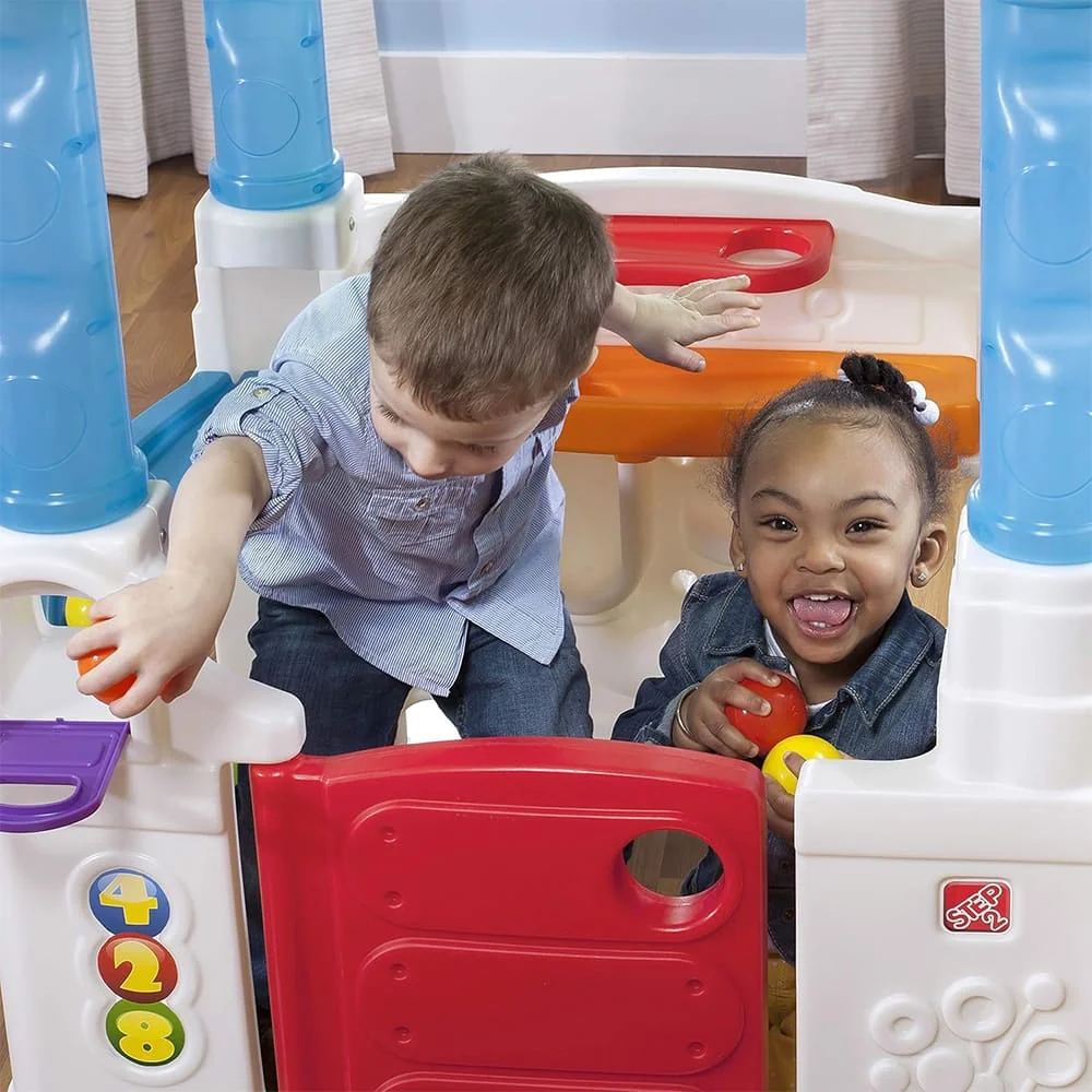 The Step2 WonderBall Fun House is an exciting and interactive playhouse designed to keep toddlers engaged and entertained both indoors and outdoors. Perfect for children aged 1.5 years and above, this colorful playhouse brings the magic of ball play to life with multiple play zones. Kids can toss play balls onto the rooftop and watch them roll through the winding tubes, making cheerful plinking sounds that add to the sensory fun. The fun doesn’t stop there—inside the playhouse, little ones can drop balls down the zig-zag ramps and follow their journey through the maze until they reach the basin at the bottom. Outdoor fun house a fun-filled activity center that encourages cause-and-effect learning, fine motor skills, and endless giggles.