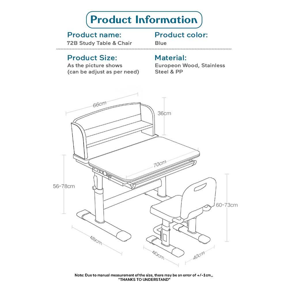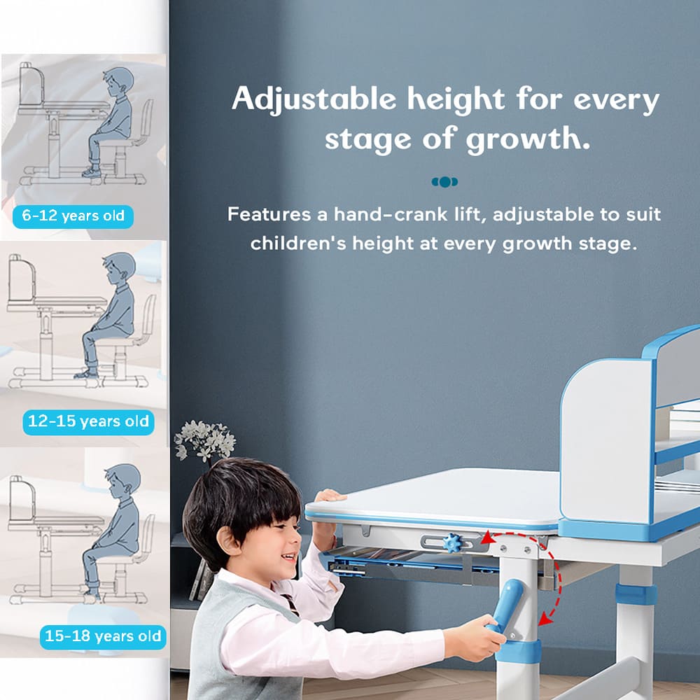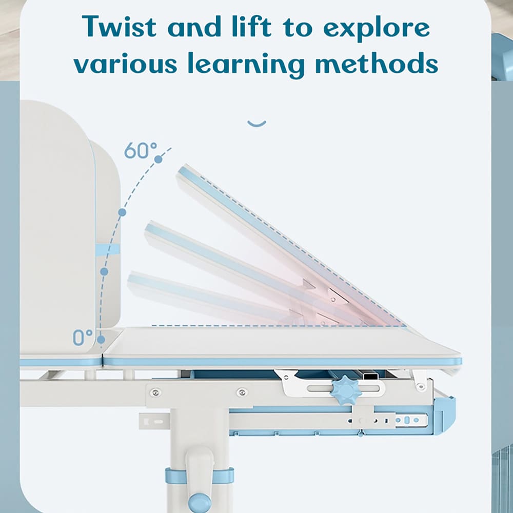 StarAndDaisy Study Table and Chair Set for Children with Adjustable Height, Smart Storage, Flexible Desk, and Adjustable Design – 72B (Blue)