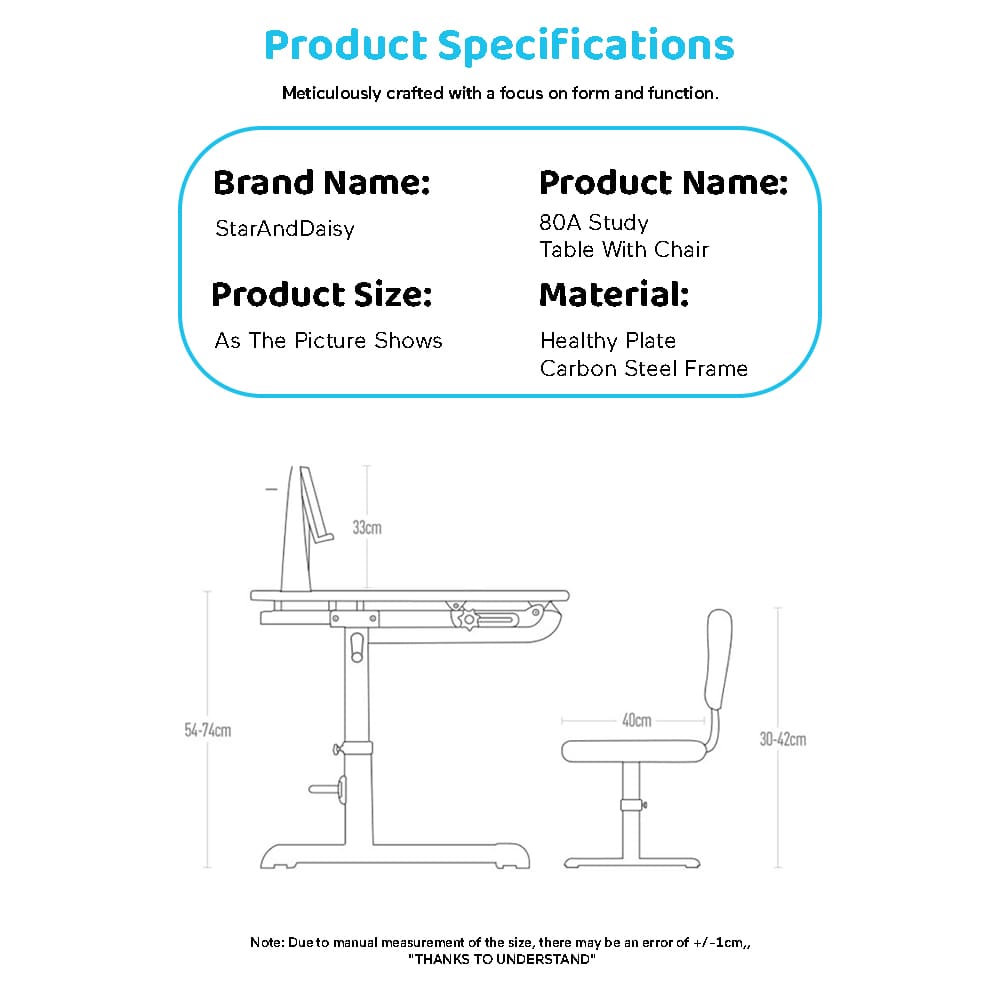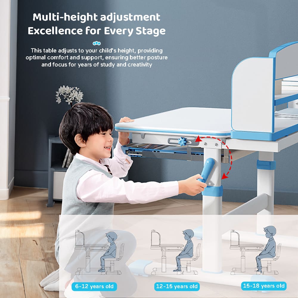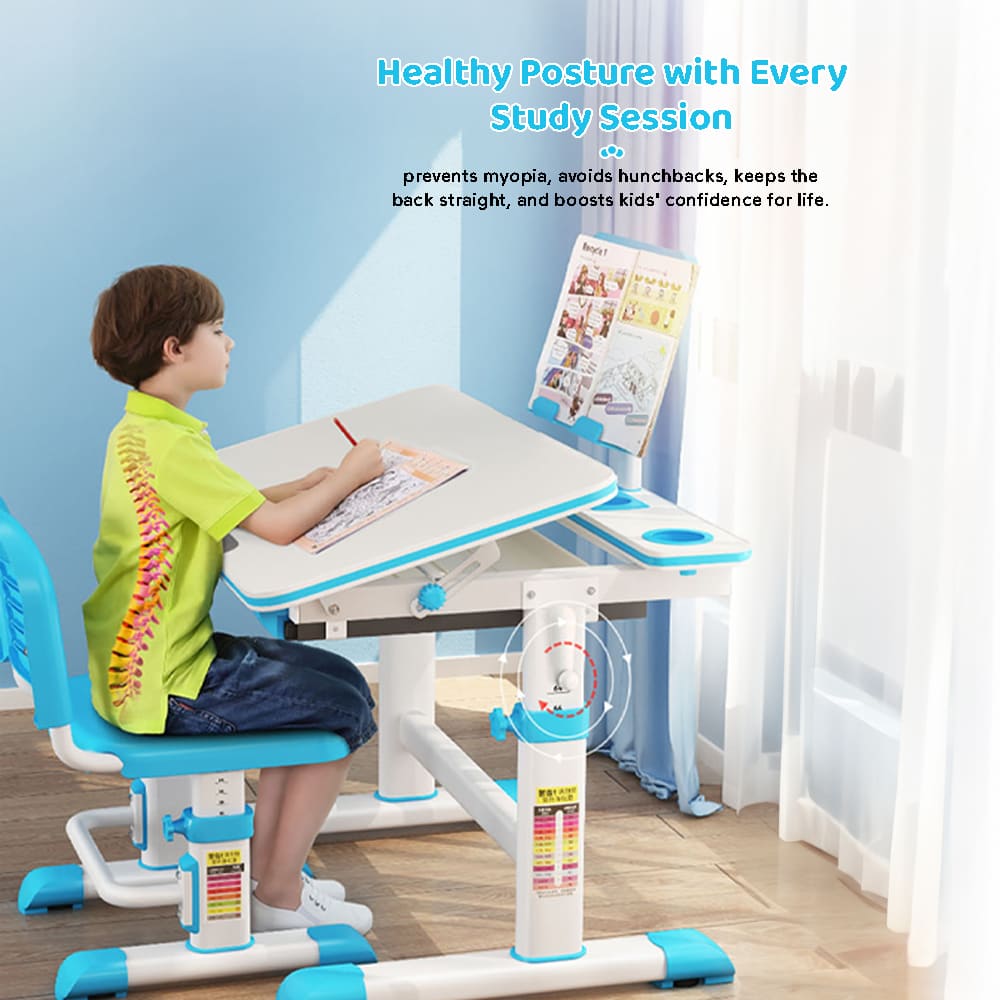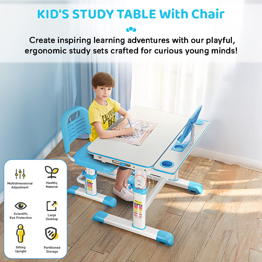 StarAndDaisy Study Table Chair Set for Kids with Adjustable Height, Smart Storage, Flexible Desk, and Book Holder – 80A Blue
