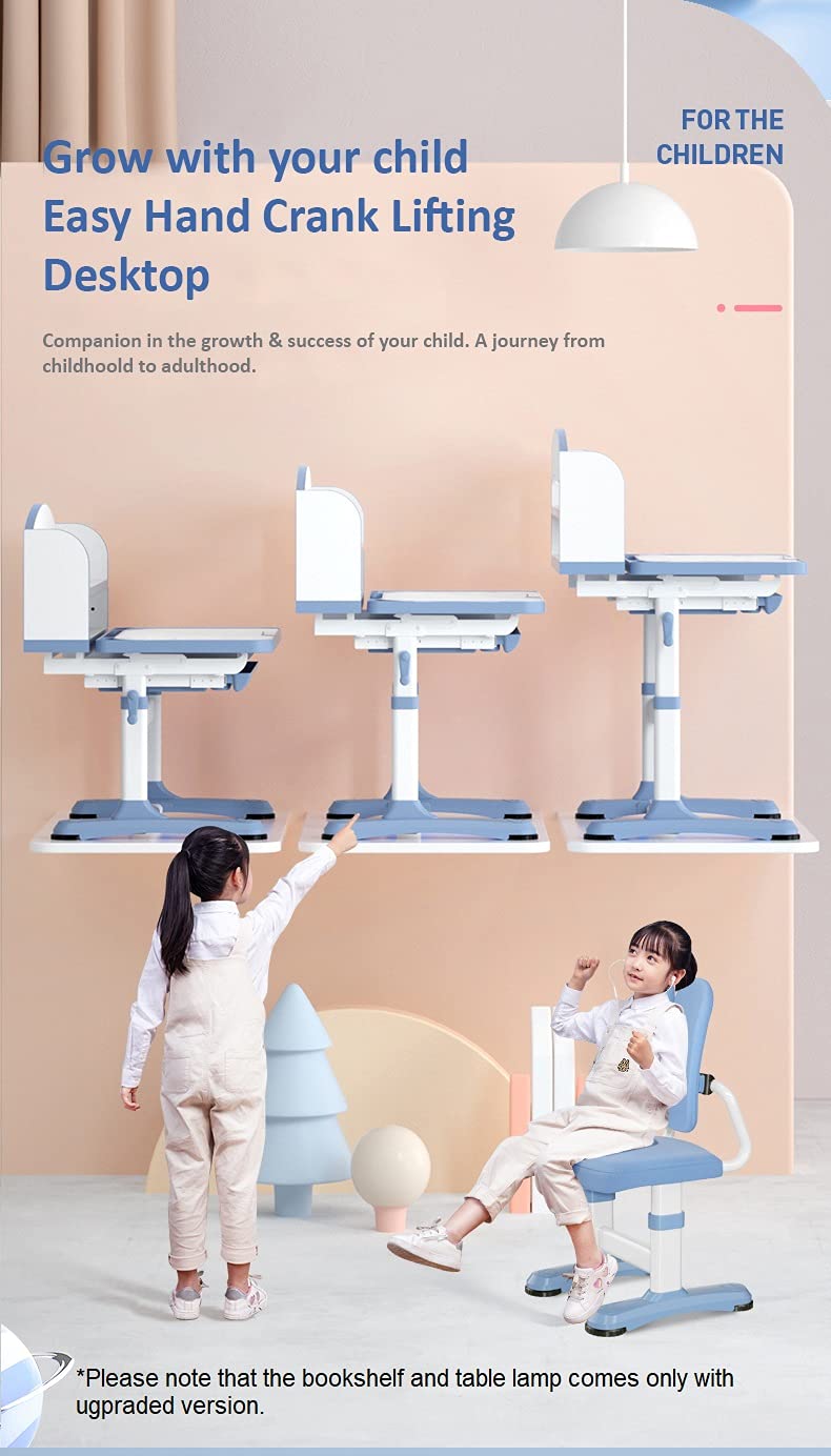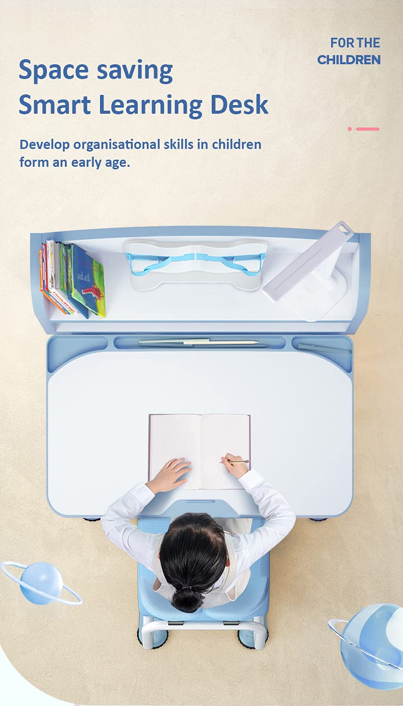 StarAndDaisy Smart Foldable Kids Study Table and Chair Set for Children/ Student with LED Lamp and Book Storage Shelf (Pink | R8-3)