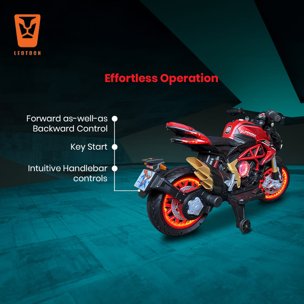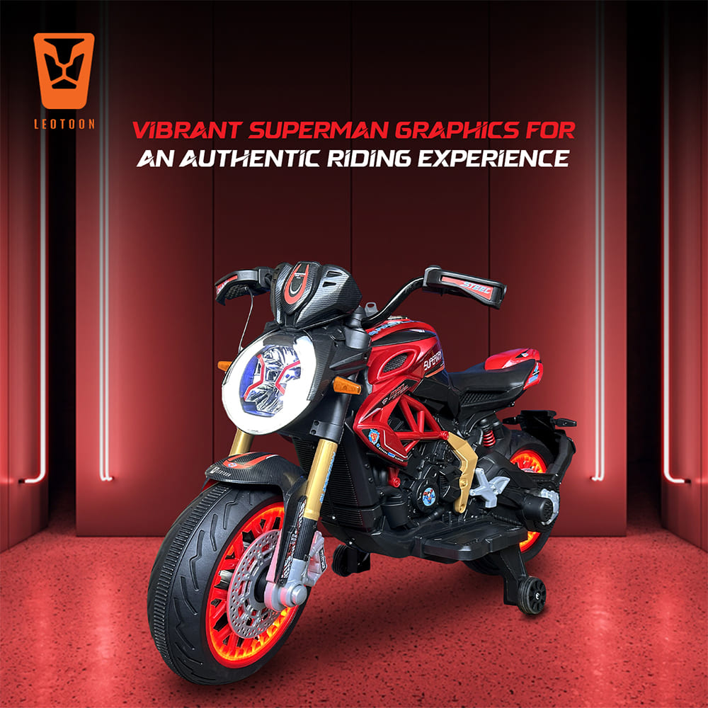 StarAndDaisy Superman Electric Bike for Kids, Battery Operated Mini Bike with Lights and Sound, Motorcycle Toys for Boys