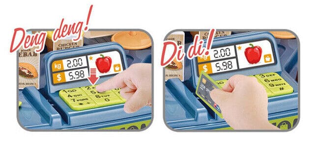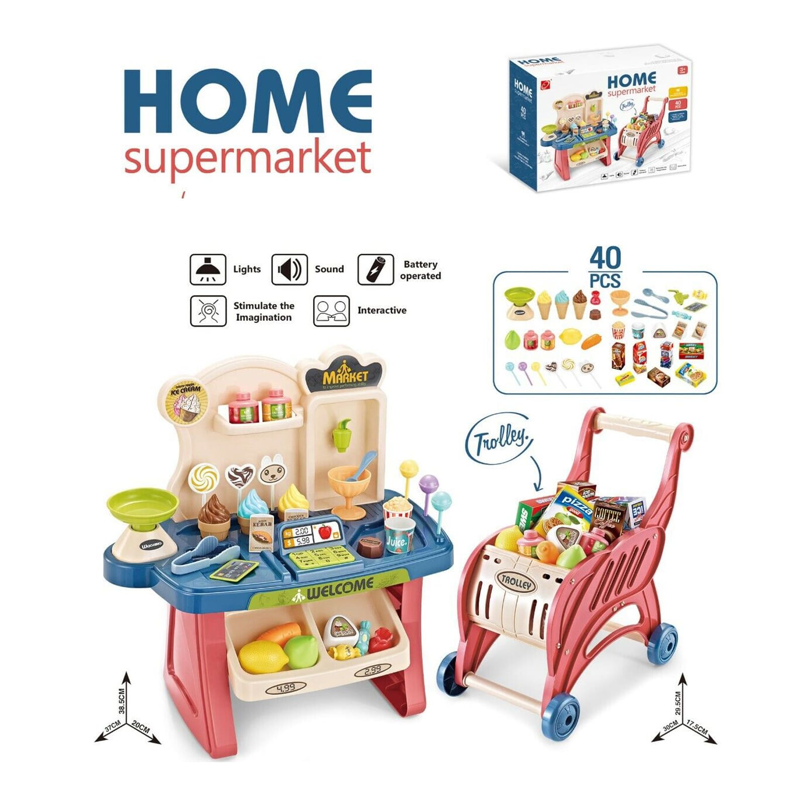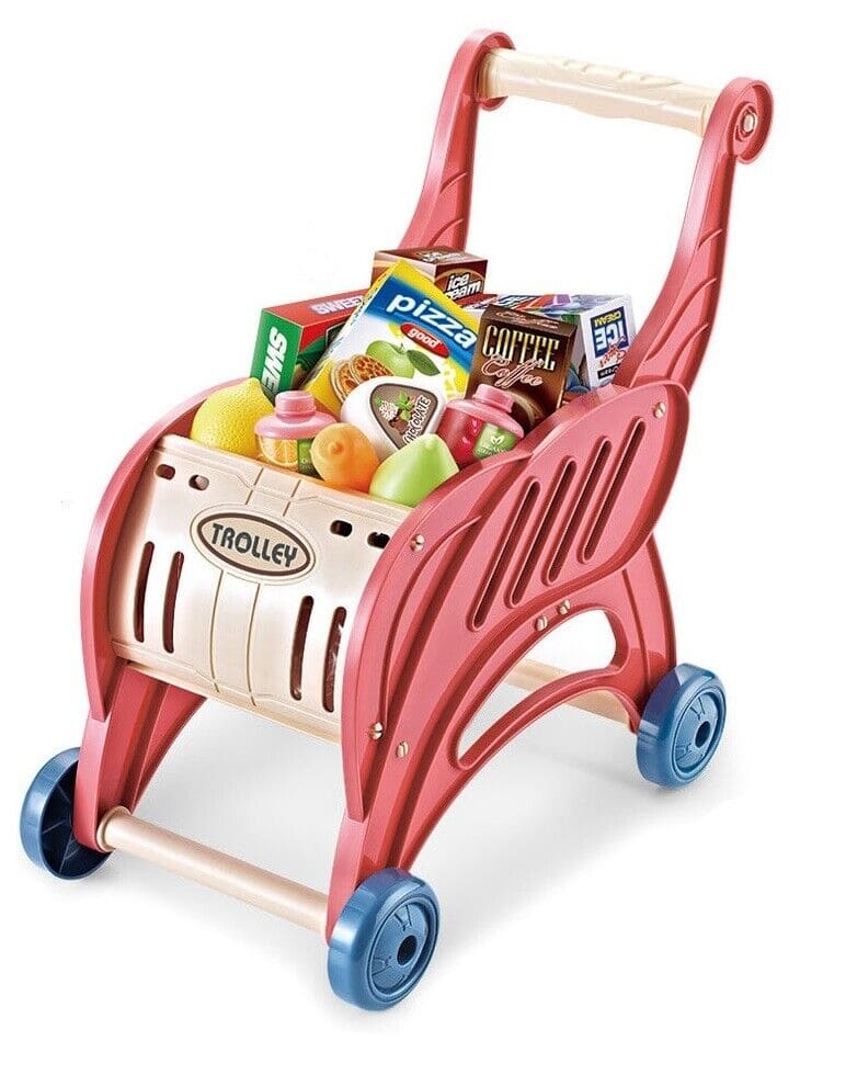 Supermarket Trolley Pretend Play Toys Kids Role Push Shop Store Shopping Cart Cashier Cooking (40 Pcs. Accessories)