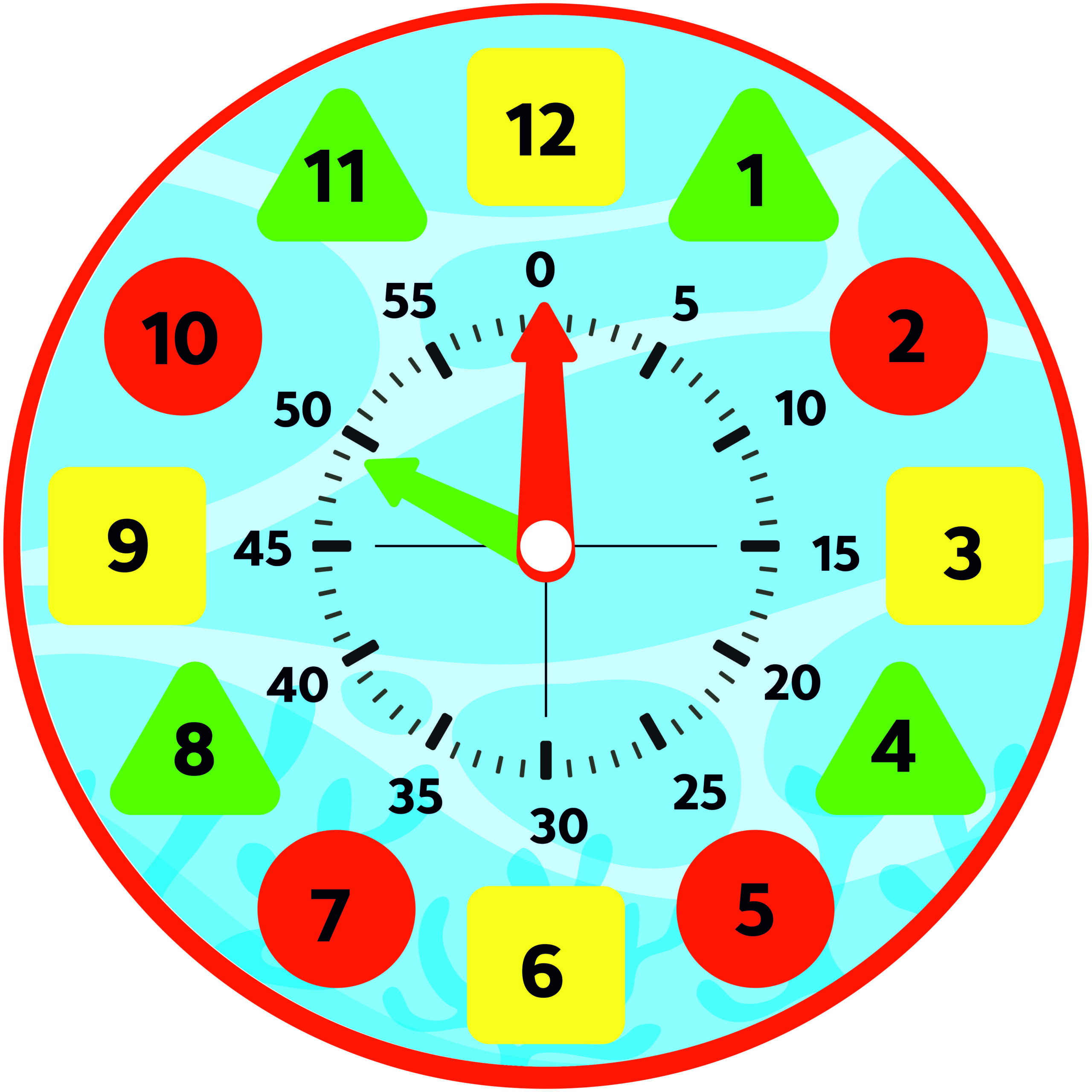 Learn about time, different shapes, and numbers in a fun way.