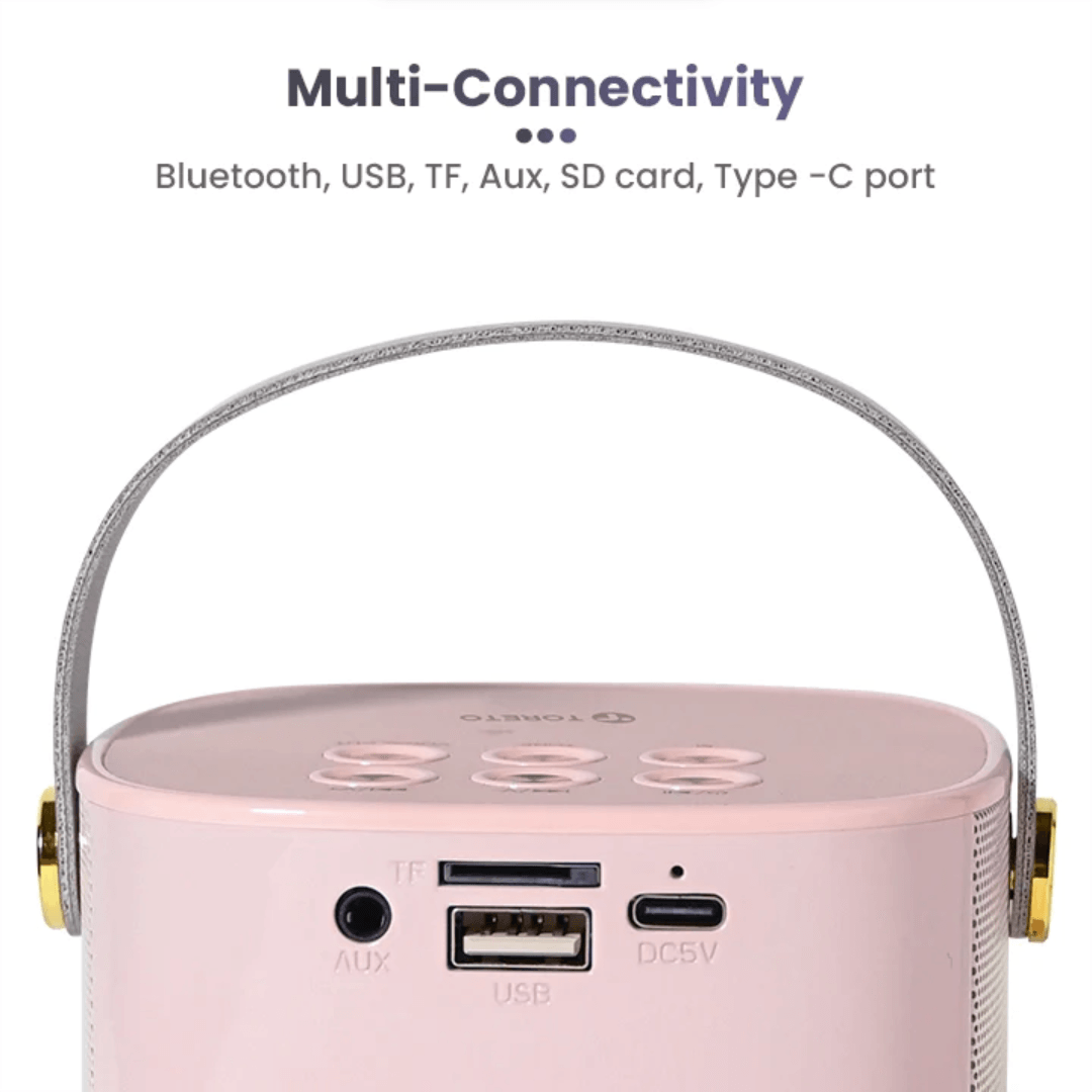 Introducing the Toreto Tor-375 Jukebox Wireless Speaker – a fusion of innovation and versatility. Elevate your audio experience with crystal-clear sound and a touch of personalization. With the innovative vocal cut feature, immerse yourself in the spotlight as it intelligently lowers background music to amplify your voice, perfect for karaoke nights and announcements. Boasting a robust 1500mAh battery capacity, this speaker ensures endless entertainment, allowing you to groove to your favorite tunes for hours on end. Seamlessly blending technology with style, the Tor-375 showcases a timeless design while embracing modern wireless connectivity, making it effortlessly pairable with your devices. Whether it’s a party, a casual hangout, or a professional presentation, the Toreto Tor-375 Jukebox Wireless Speaker guarantees an immersive and tailored audio experience that adapts to your needs.