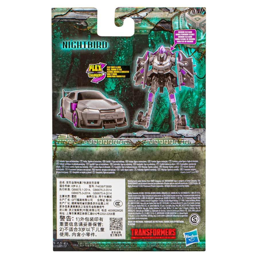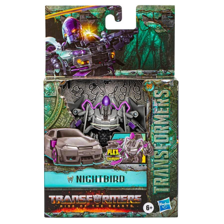 Transformers Flex Changers bring the power of Energon to life! Inspired by Transformers: Rise of the Beasts, Nightbird F4638 quickly converts between robot and alt mode with just a few simple steps. Join the epic adventure featuring the Maximals, Predacons, and Terrorcons.