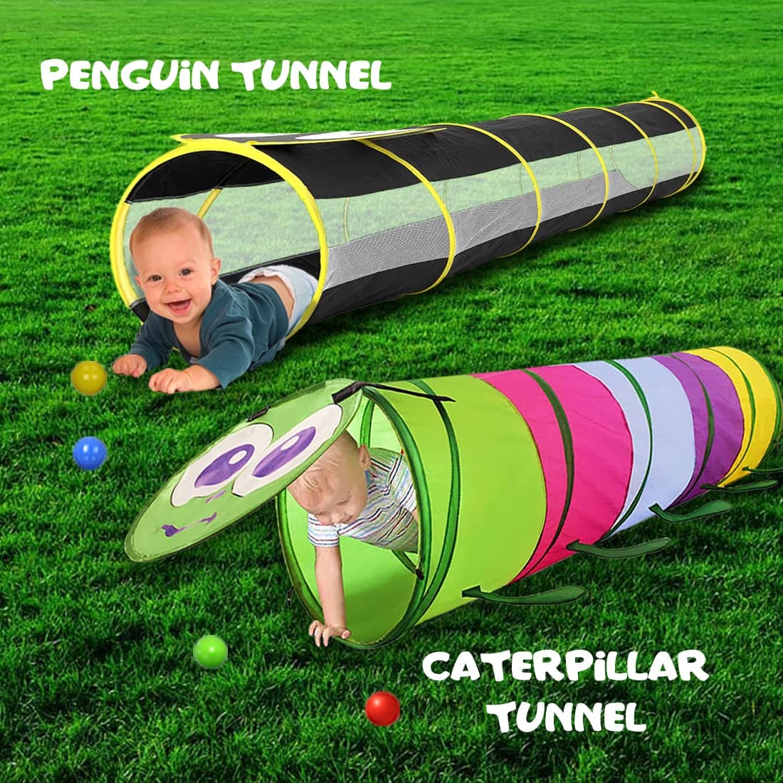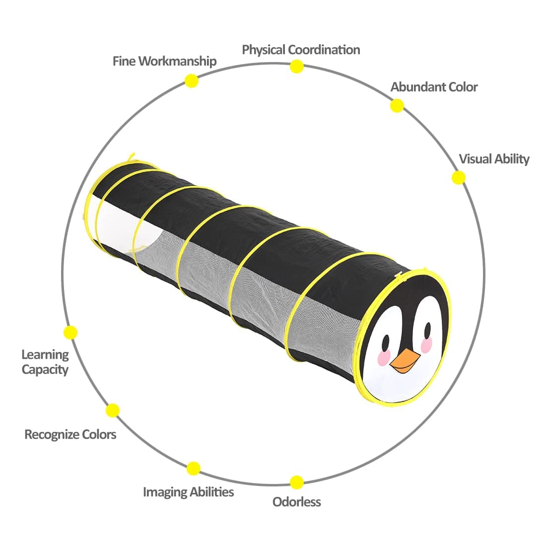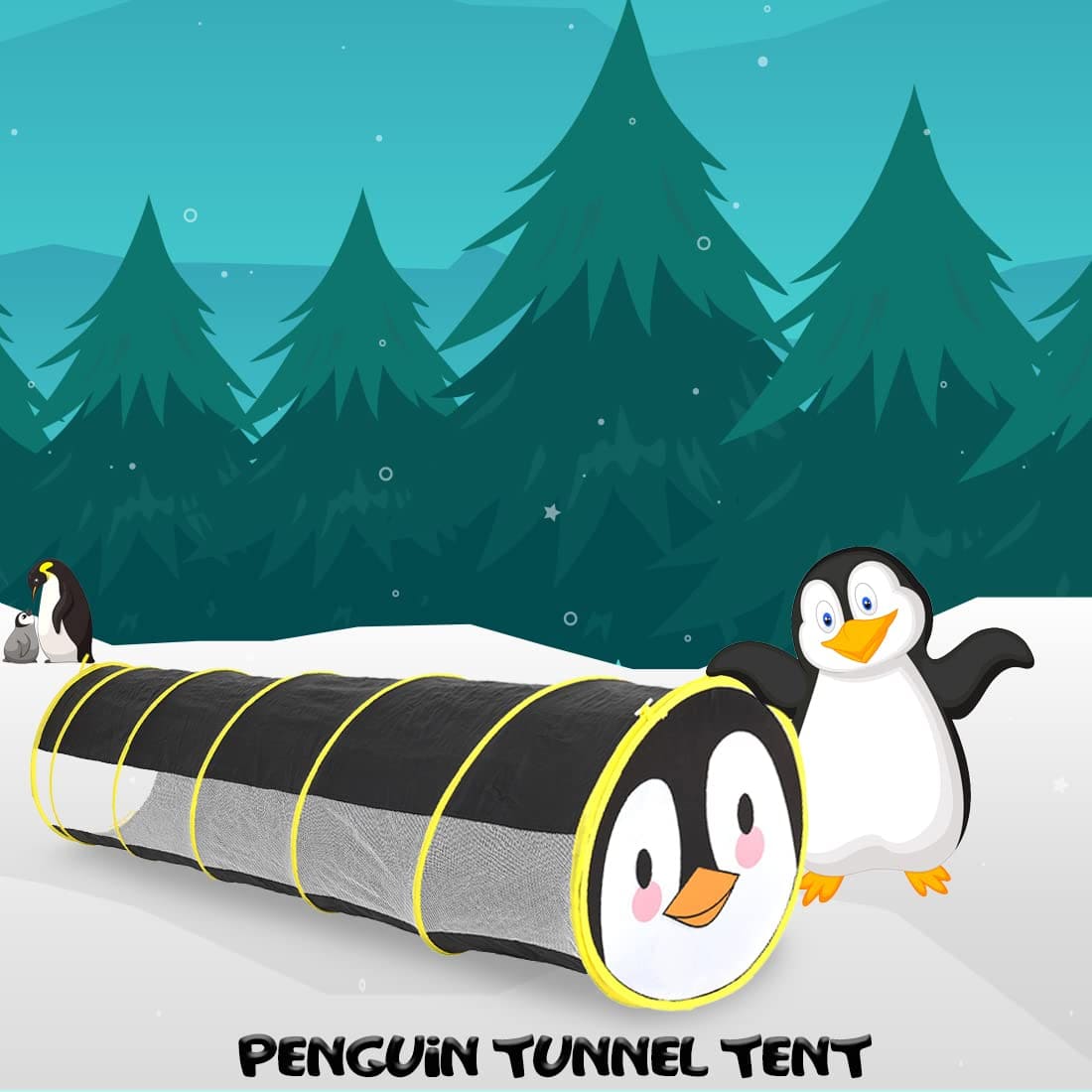 Tunnel Tent for Kids – Foldable Indoor Outdoor Tunnel for Toddlers, 6 Feet Long Pop-Up Activity Toys – Penguin Face Tunnel
