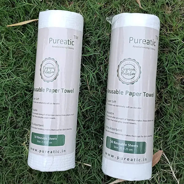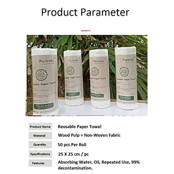 SND Homes Eco Friendly Reusable Kitchen Towel Roll of 50 Sheets Made with Bamboo Fiber Cloth- Anti-Bacterial, Fine Super-Absorbent Fabric Washable and Reusable (Set of 2 Rolls (100 Sheets))