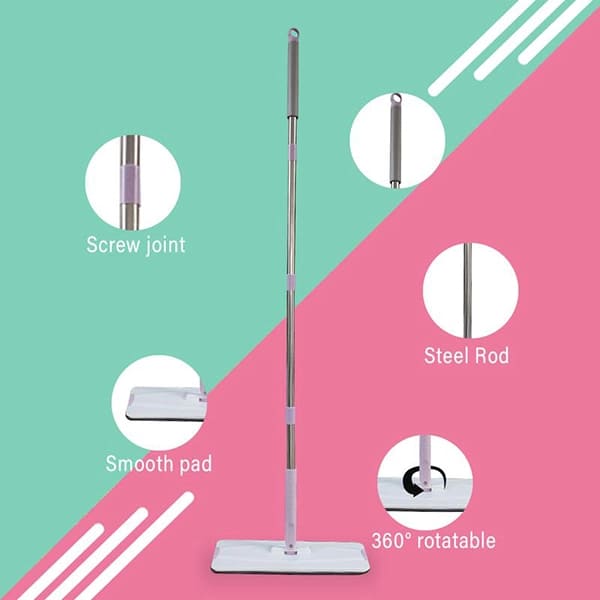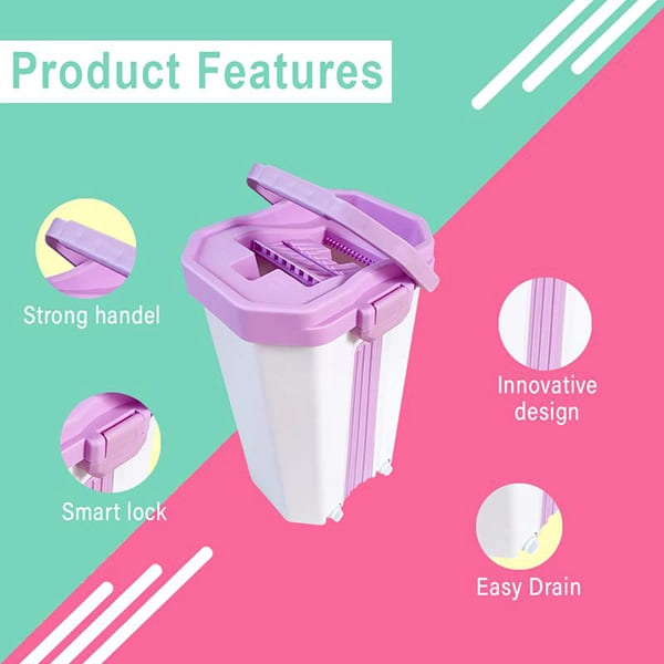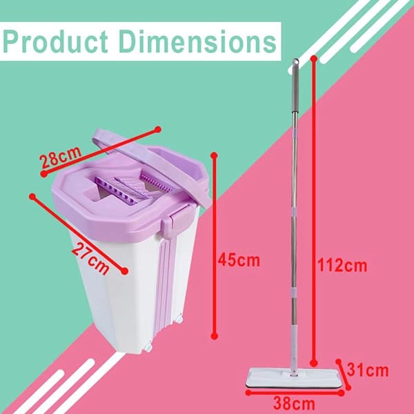 SND Homes Flat Spin Mop with Bucket – Upgraded Hands-Free Squeeze Microfiber Flat Mop System 360° Flexible Head (38X12.5 cm) Mop with (2+2 free) Super-Absorbent Microfiber Pads (New Pink)