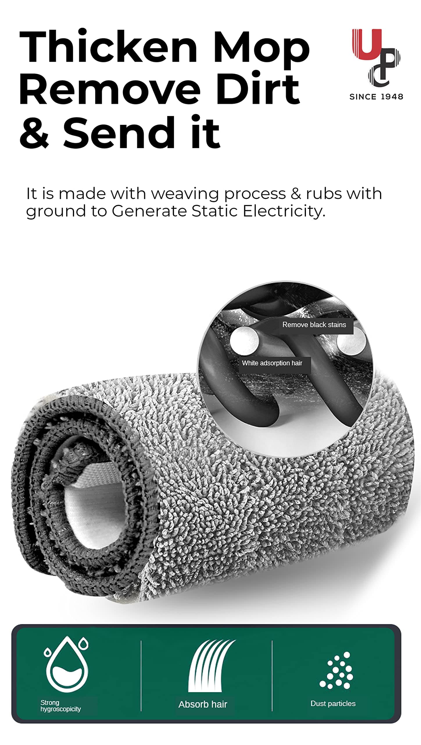 The microfiber mop head is super absorbent, and it effectively removes dirt, dust, and grime from your floors. The mop pads are machine washable, making them reusable and eco-friendly. This mop system includes (1+1) super-absorbent microfiber pads that are perfect for tackling all types of messes.