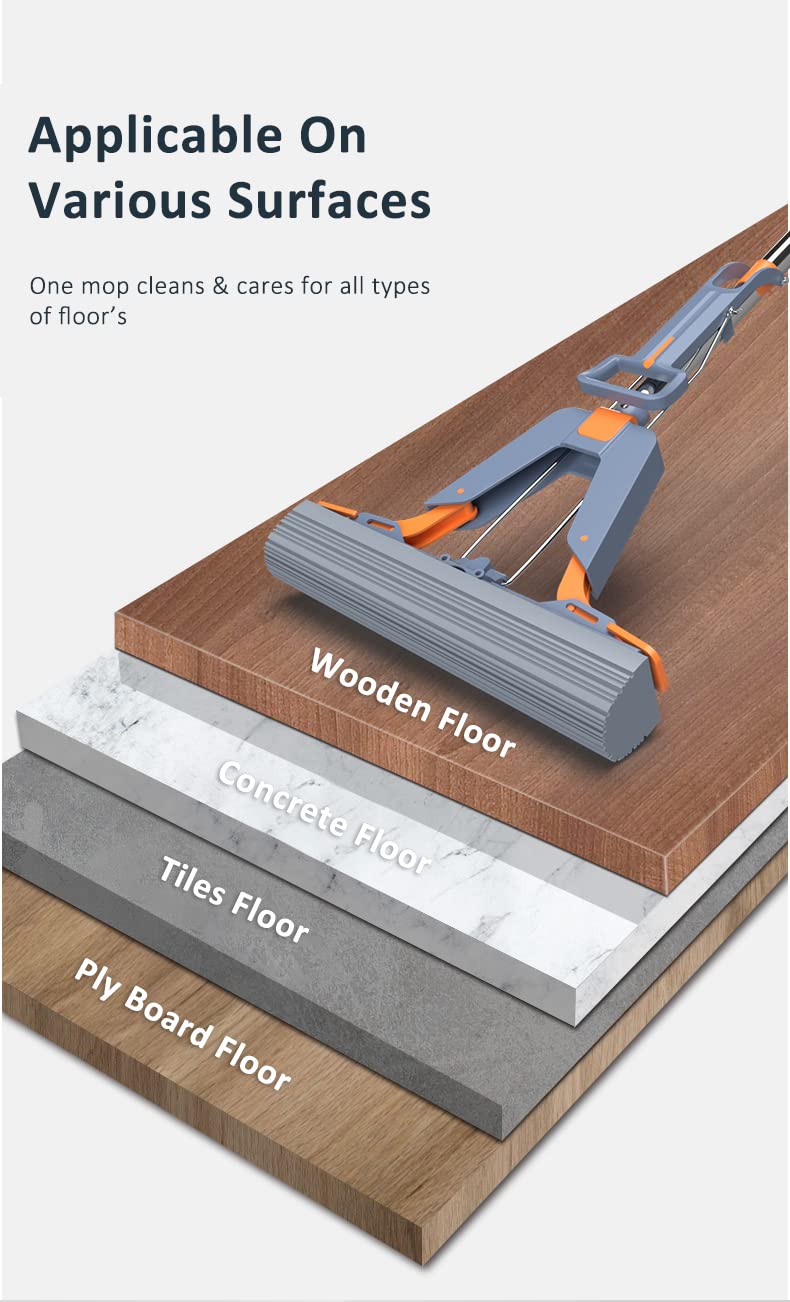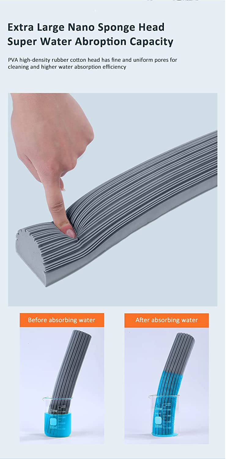 SND Homes Pureatic Upgraded Hands-Free Nano Sponge Mop with Flexible Head and Super-Absorbent Pad (White, 38X12.5 cm)