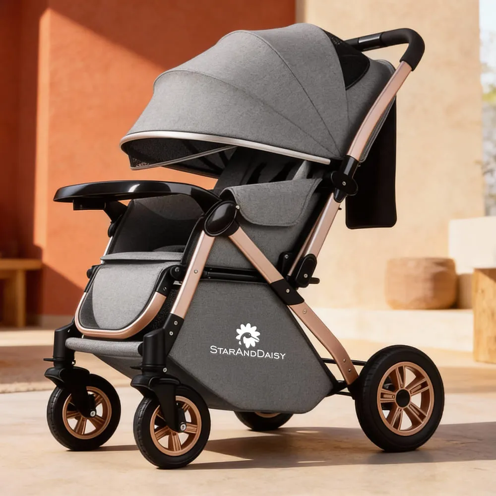 StarAndDaisy Ultra Baby Stroller Pram and Buggy, Pushchair Reversible Handle with Anti-Shock Rubber Wheels – Grey