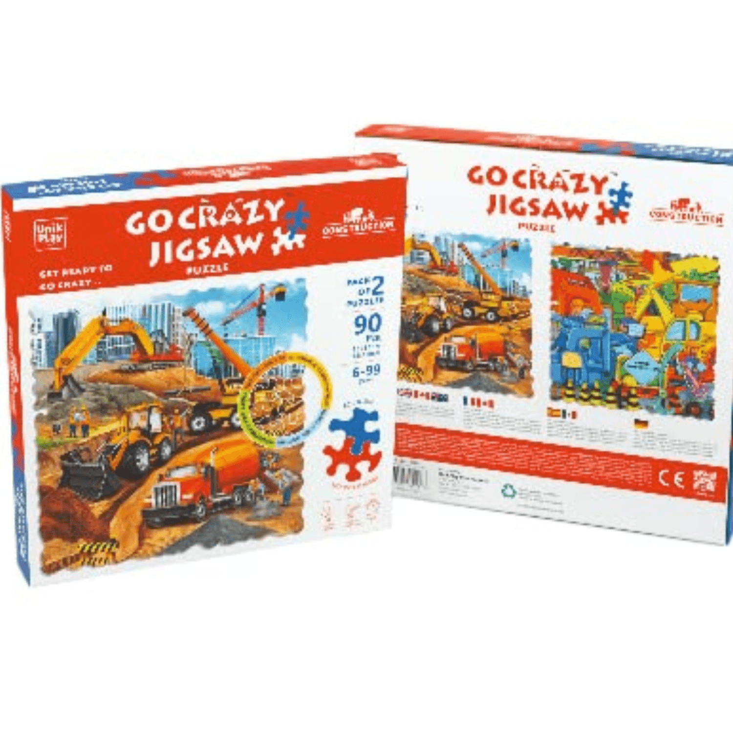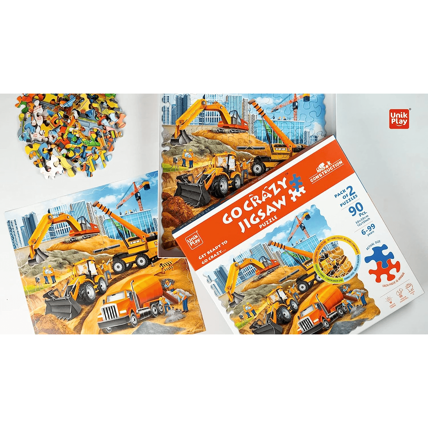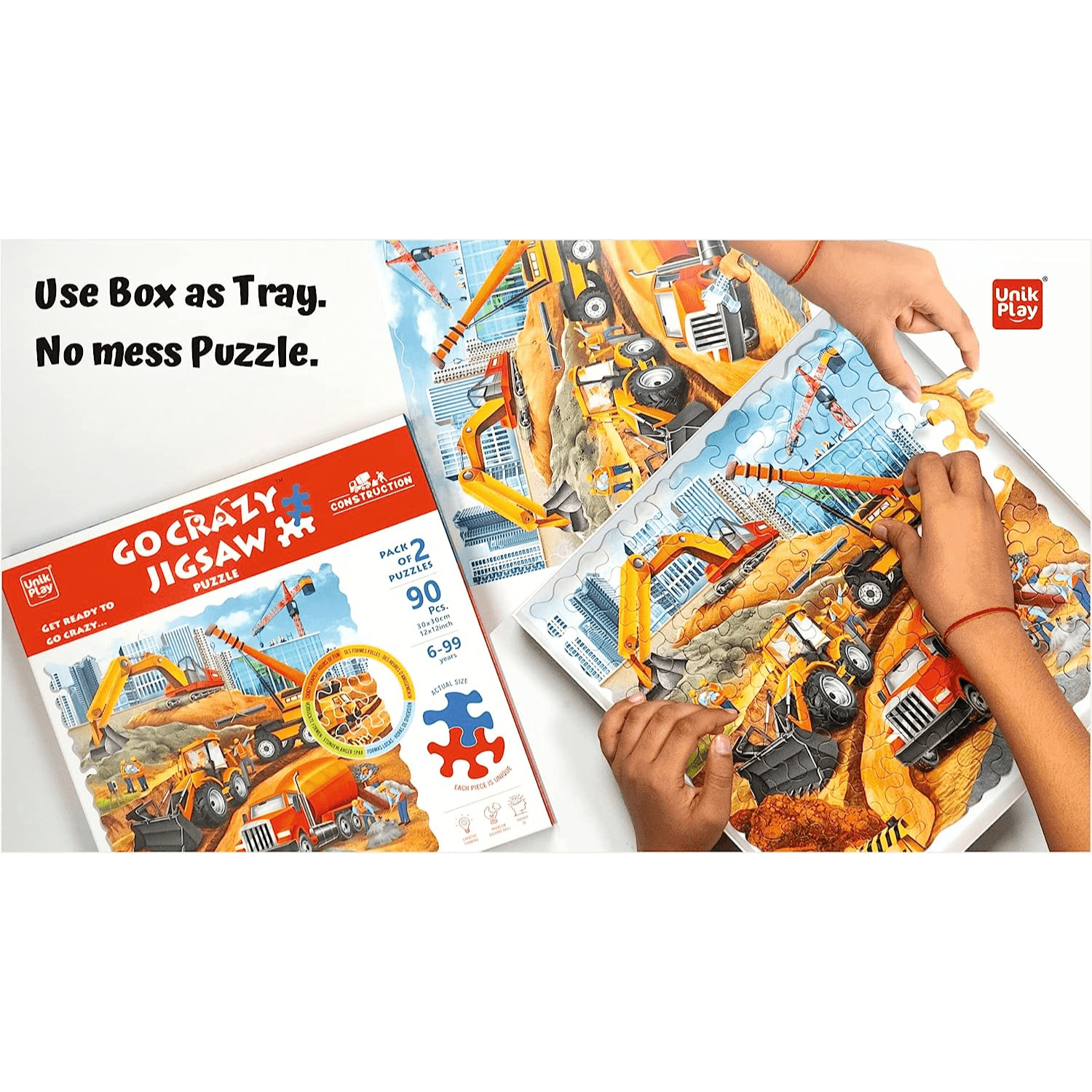 Unik Play Go Crazy Jigsaw Puzzle for Kids and Adults, Construction Theme, Attractive Cartoon Print Puzzle with Puzzle Sorting Trays for Age 6 to Up