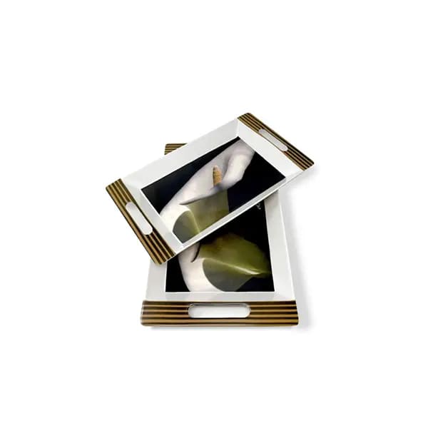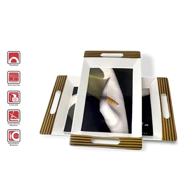 SND Homes Crystal Melamine Serving Tray, Set of 2 (Multicolour, White , Medium and Large Size)