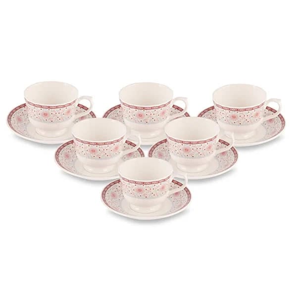 SND Homes Cup Saucer Sets with 6 Cups + 6 Saucer – New Modern Design Fine Bone China Ceramics Tableware Tea and Coffee Cups Set