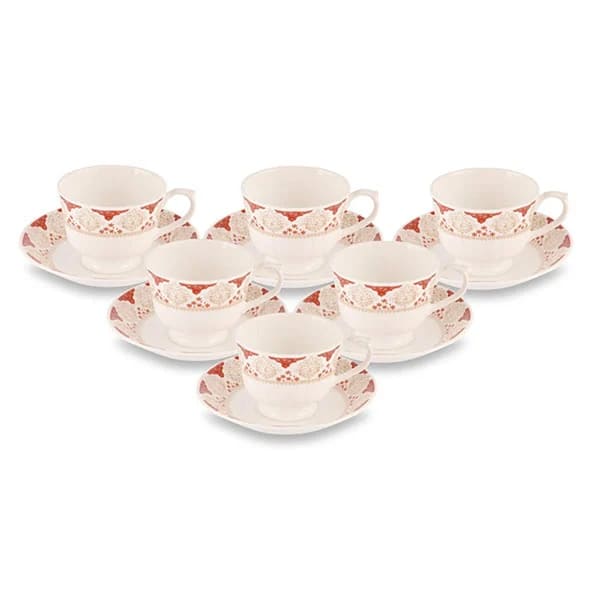 SND Homes Cup Saucer Sets with 6 Cups + 6 Saucer – New Modern Design Fine Bone China Ceramics Tableware, Premium Light Tea/Coffee Cups (Set of 6 Cups + 6 Saucer in a Box) *Made in India*