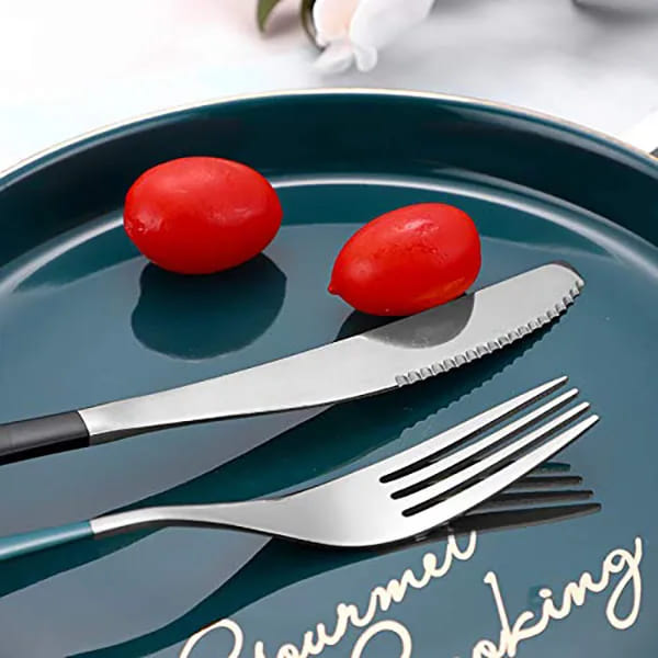 SND Homes Delicacy Cutlery for Fine Dining, Made of SUS 304 Glossy Silver Finish Spoon/ Forks/ Knives (Set of Black 6 X Spoon, Forks, Knives (Total 18))