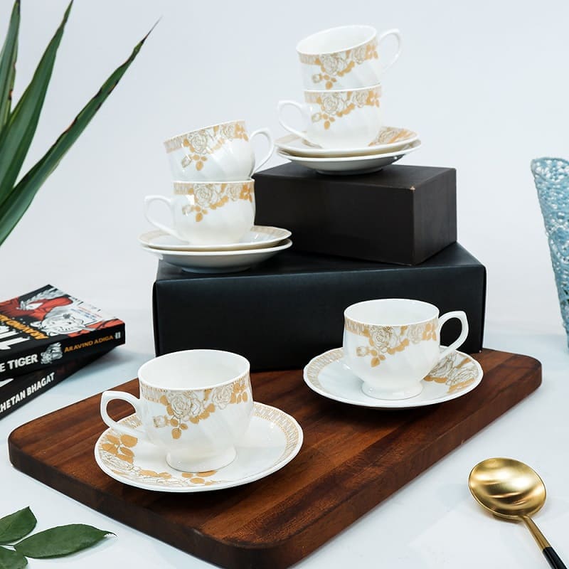 Buy cup and saucer set which is not only functional but also aesthetically pleasing. The beautiful design and vibrant colors add a touch of elegance and style to your home decor. Impress your guests and enjoy your morning beverages with our ceramic cup and saucer set. It also makes a perfect gift for any occasion, from housewarming parties to weddings.