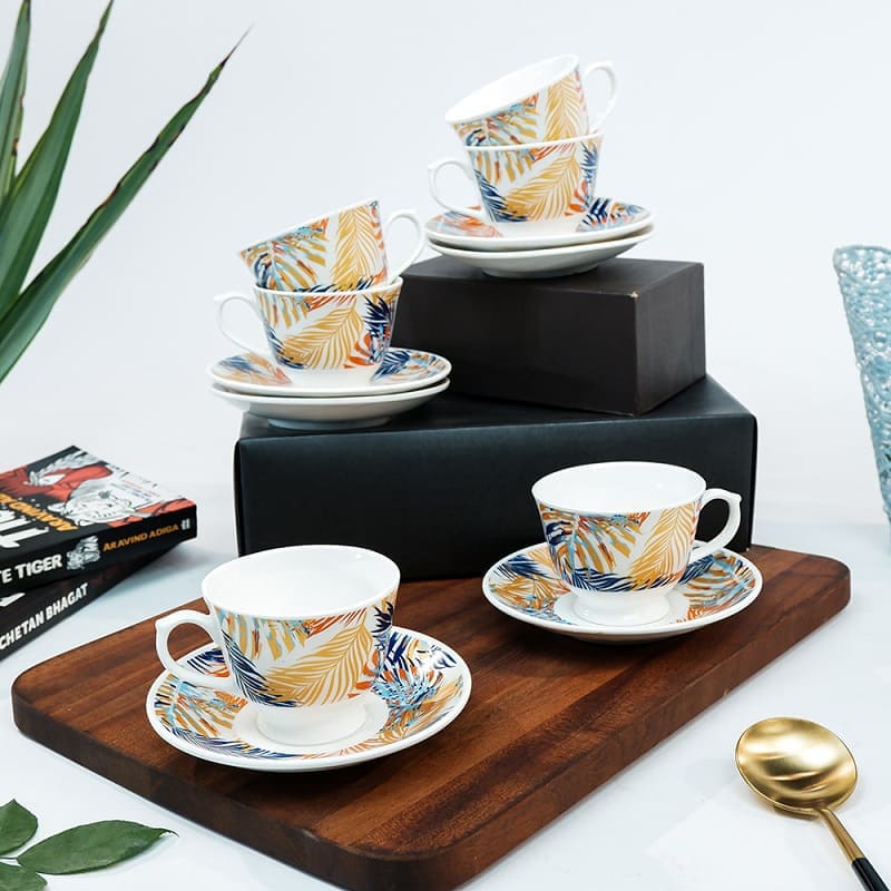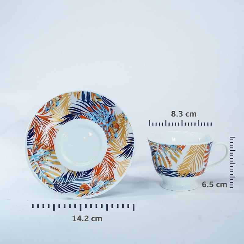 Buy our fancy cups and saucers set which is not only functional but also aesthetically pleasing. The beautiful design and vibrant colors add a touch of elegance and style to your home decor. Impress your guests and enjoy your morning beverages with our ceramic cup and saucer set. It also makes a perfect gift for any occasion, from housewarming parties to weddings.