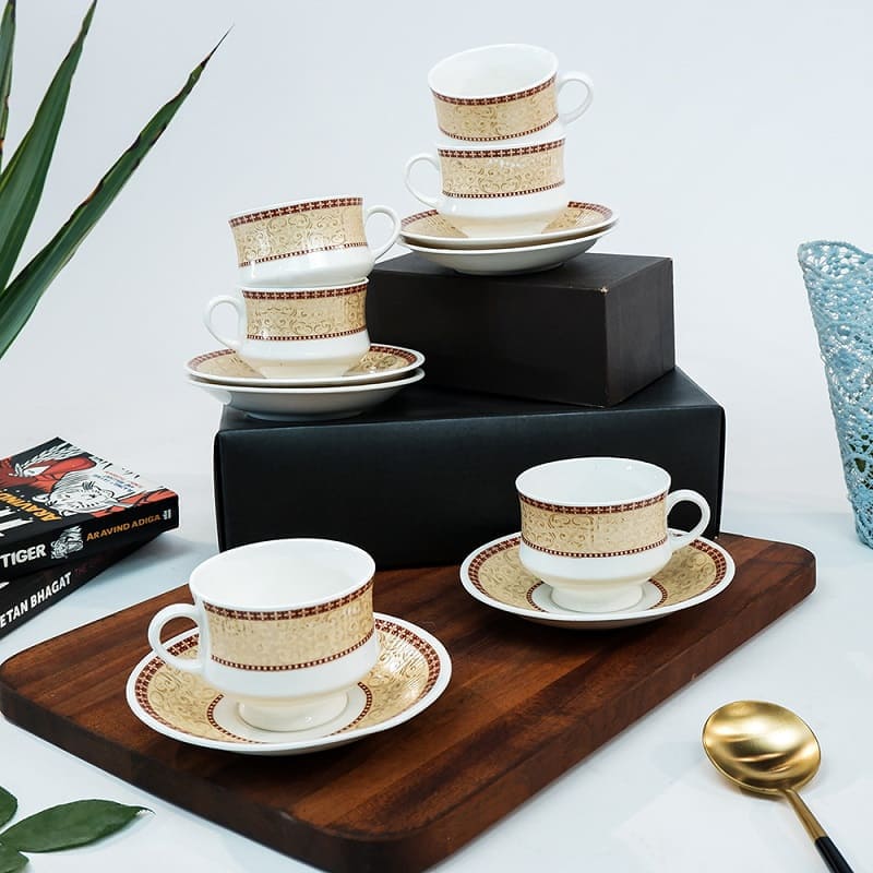Buy our high tea cups and saucers set which is not only functional but also aesthetically pleasing. The beautiful design and vibrant colors add a touch of elegance and style to your home decor. Impress your guests and enjoy your morning beverages with our ceramic cup and saucer set. It also makes a perfect gift for any occasion, from housewarming parties to weddings.