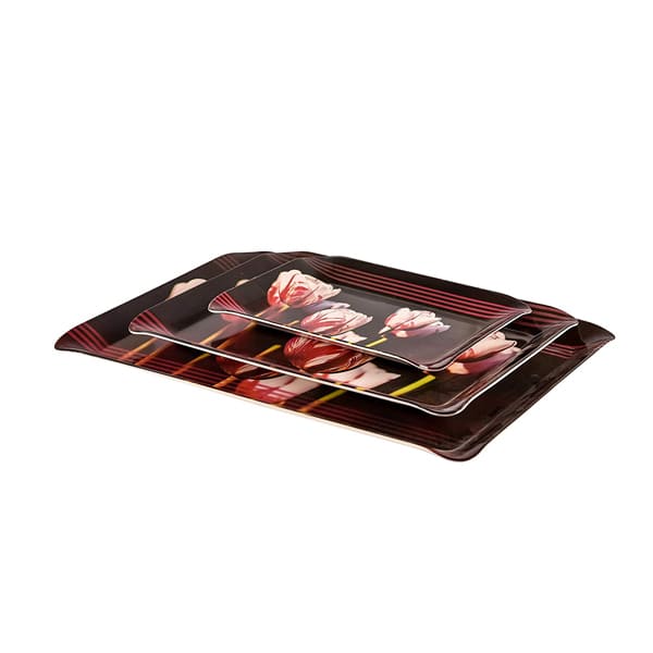 SND Homes Premium Flora Shape Modern Designs Melamine Break Resistant Serving Tray (S, m, L)- Set of 3