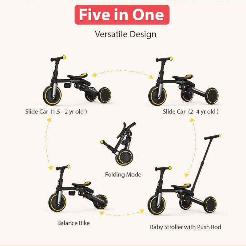 5 in 1 Tricycle for Kids with Parent Handle & Convertible Feature Luxury Design – Uonibaby, White