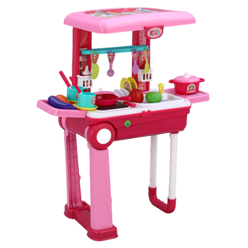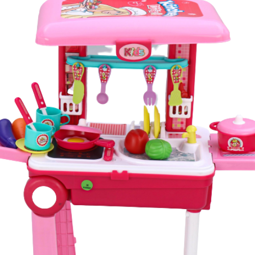 Shop, slice, and cook with these vibrantly colored cutting vegetables, food, little stove tops, pots, pans, and utensils