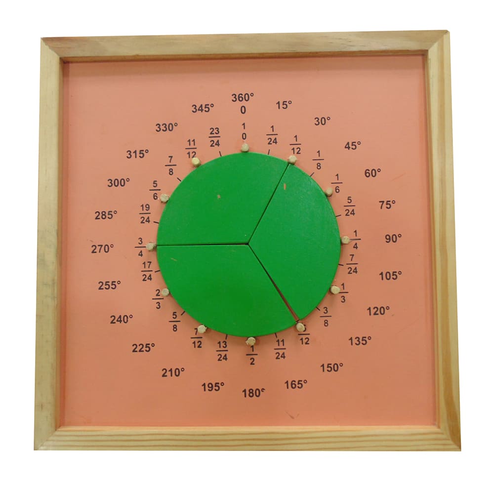 This Product is made of Wood. Kids learn about fractions ,pies, angles and shapes by by setting different wooden element as per shapes and learn about different angles. Size of Board- 30*30 cm | Thickness of Board- 12 cm| Thickness of each part- 7 mm