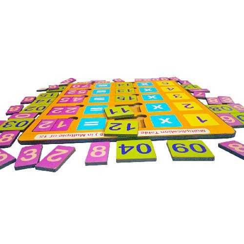 Contents- One Board, Numbers from 0-9, 4 each, for products of multiples and Multiplicand Numbers- 1 to 15 in green color