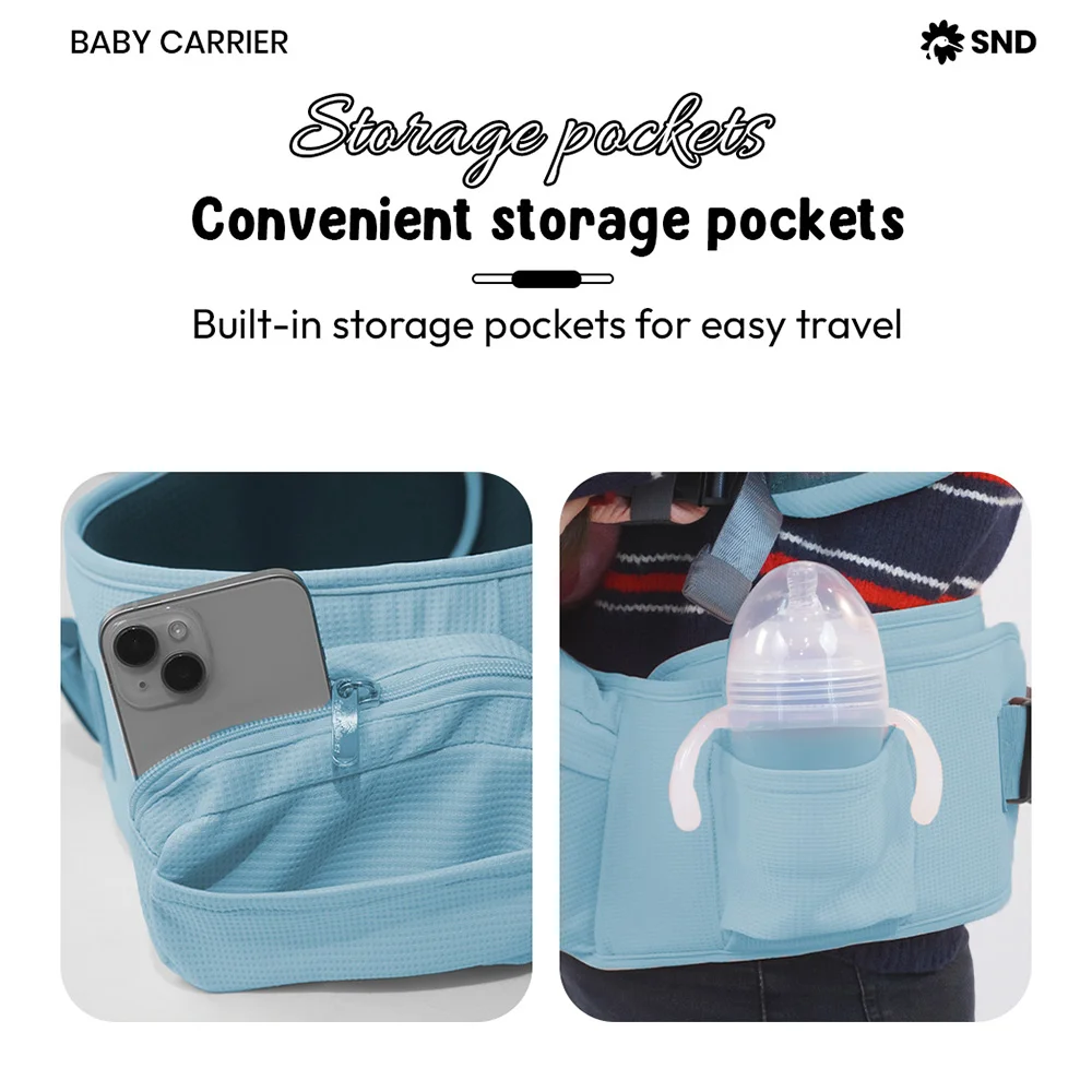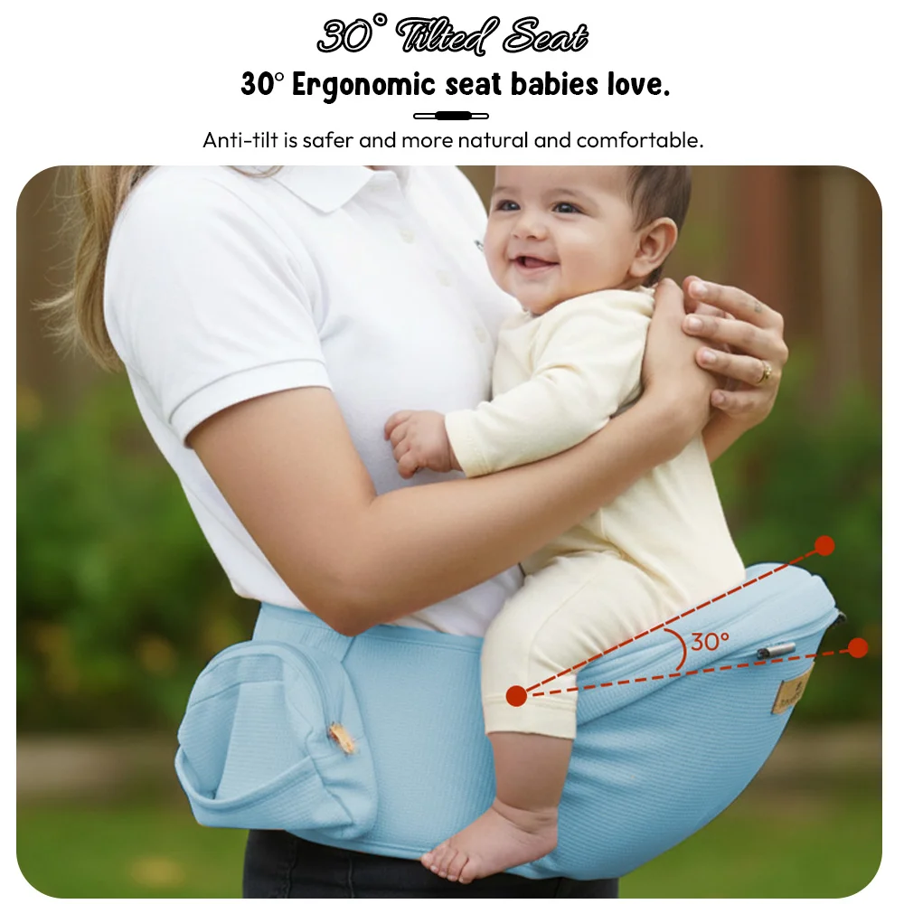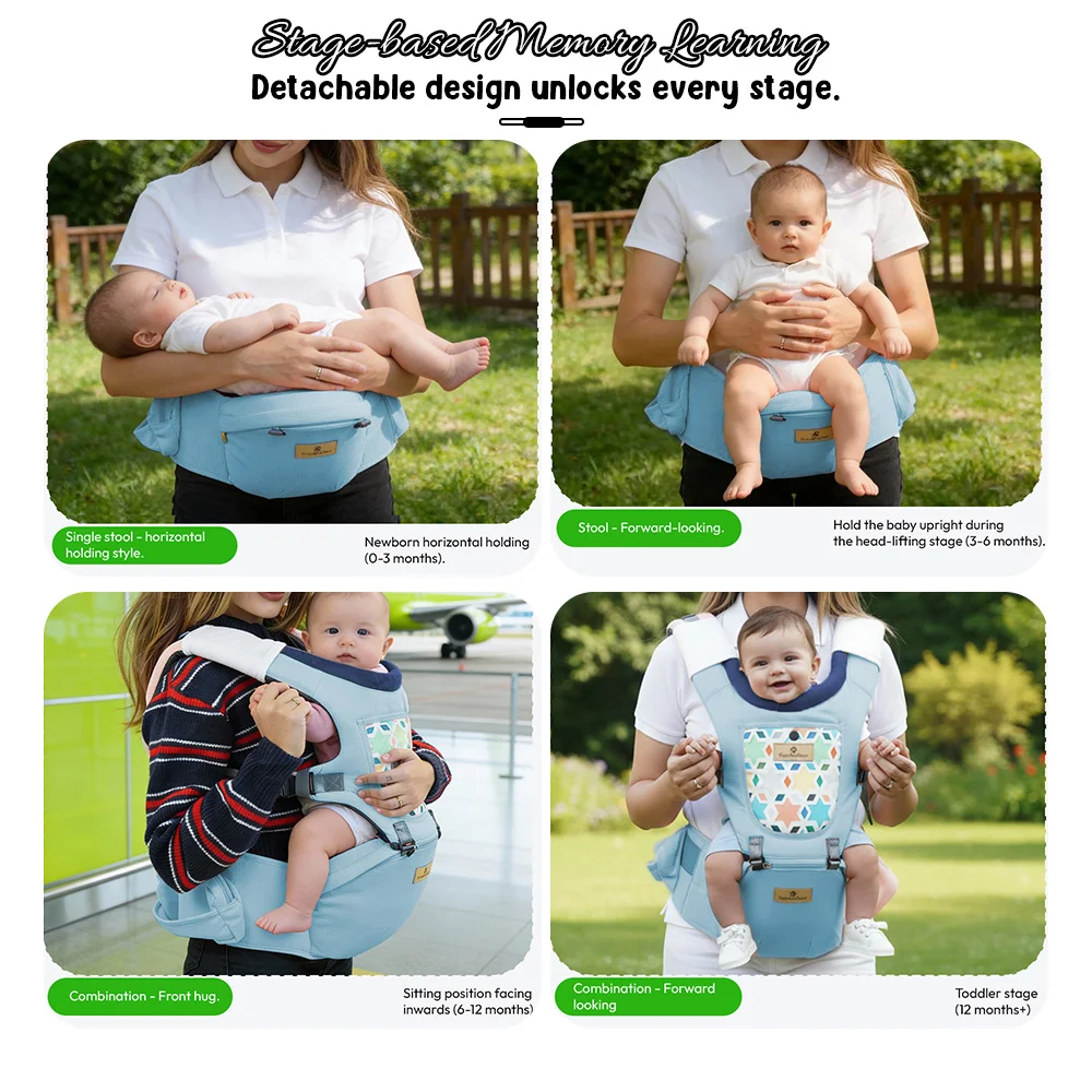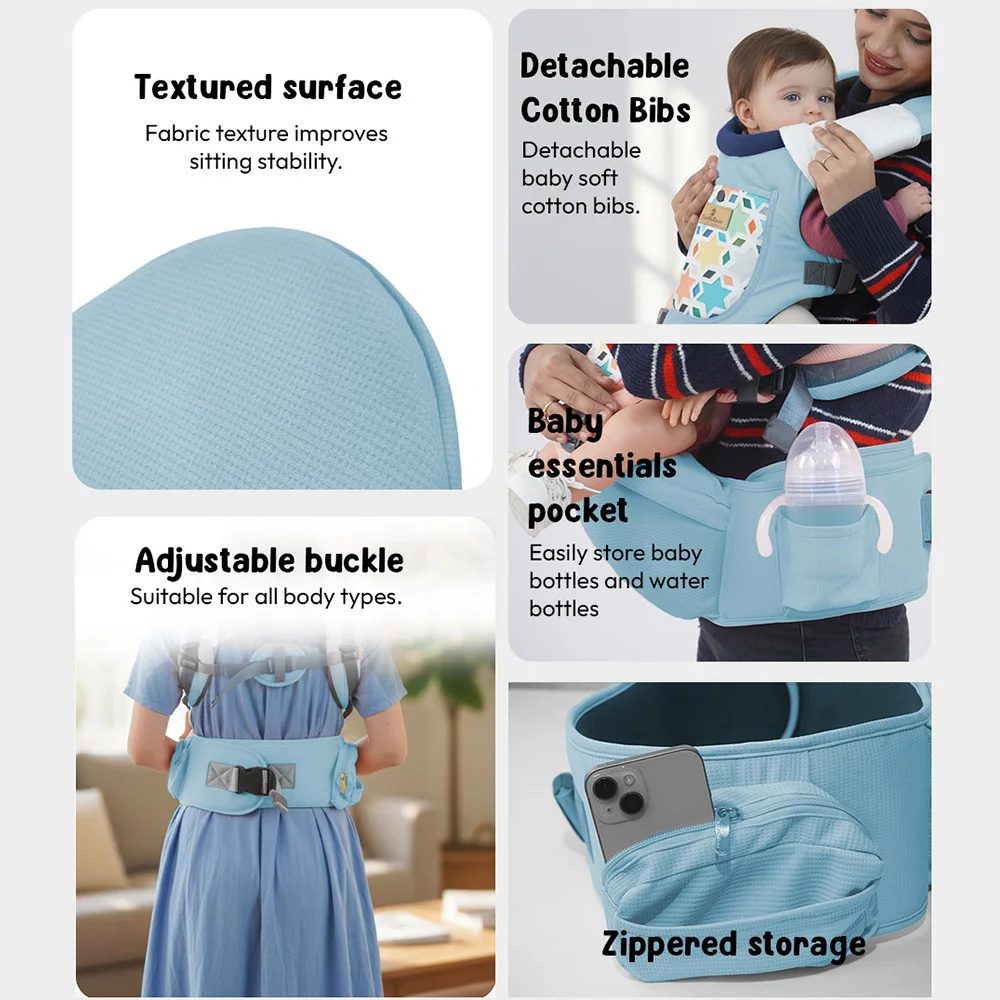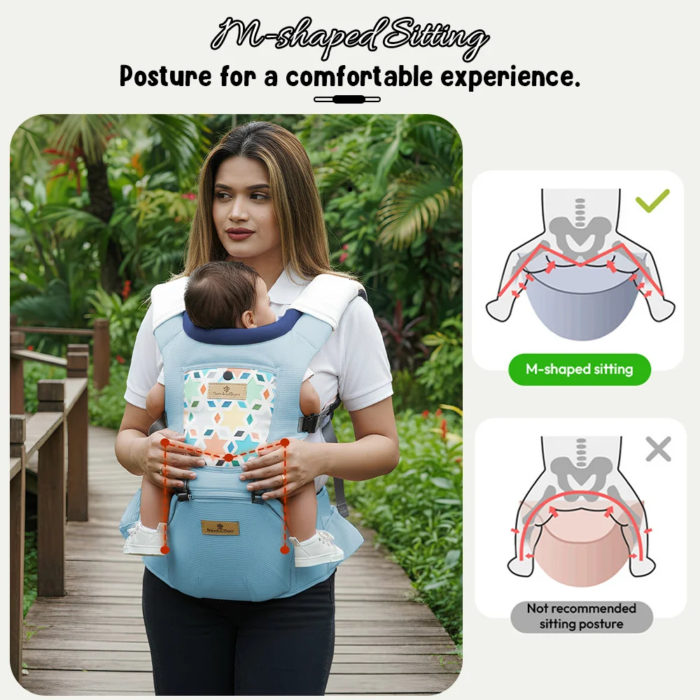 StarAndDaisy 4-in-1 Baby Carrier with Detachable Waist Stool, Adjustable, Breathable and Supportive for All Stages – Light Blue