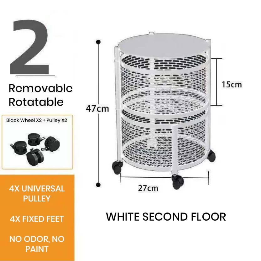 SND Home 5 Layer Round Rotating Fruits & Vegetables Storage Shelves Basket Rolling Rack with Breakable Wheels for Kitchen Bathroom Office (White)