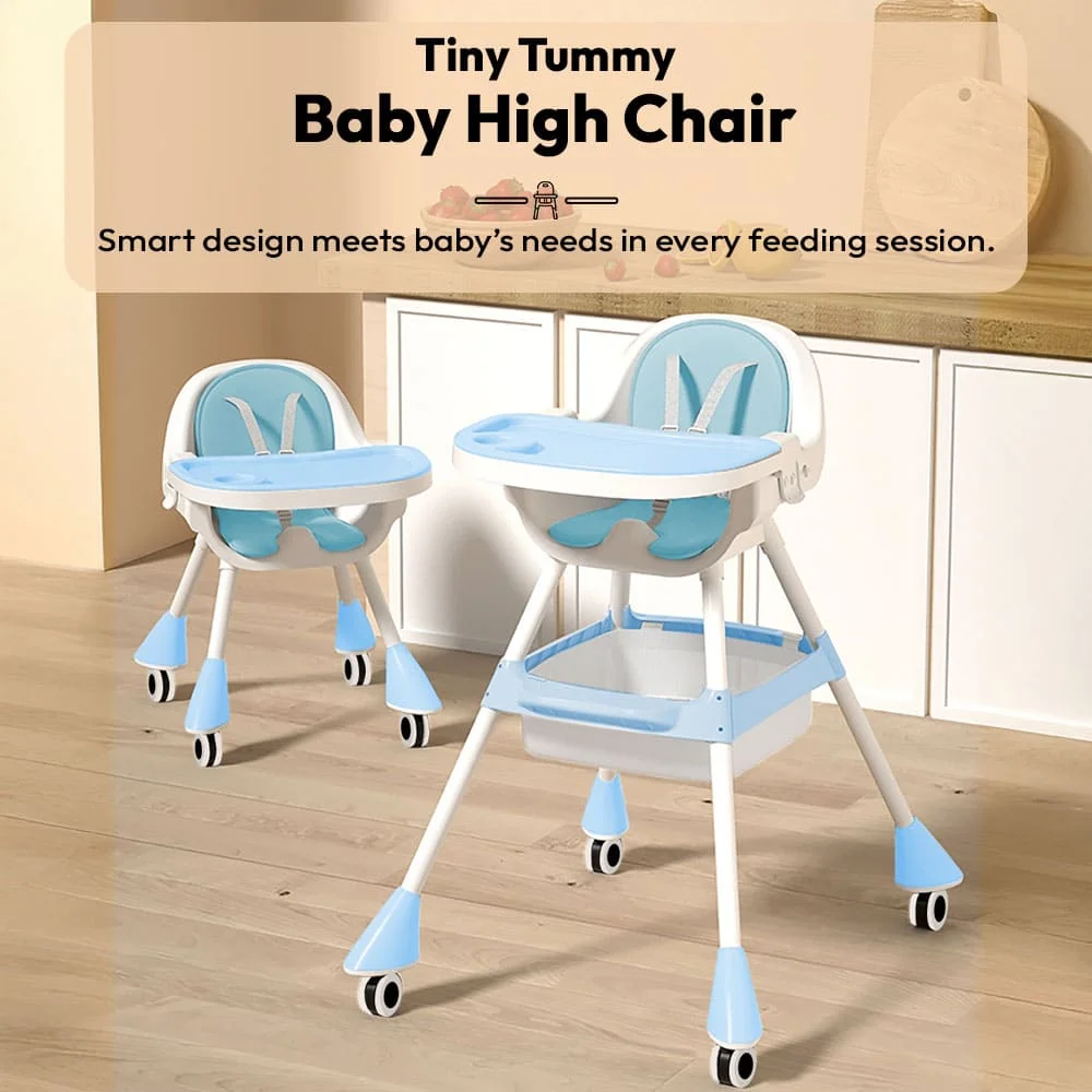 StarAndDaisy Adjustable Baby High Chair with Dual Feeding Trays, Booster Seat Feature, Safety Harness, and Silent Wheels for Easy Movement and Feeding – Blue