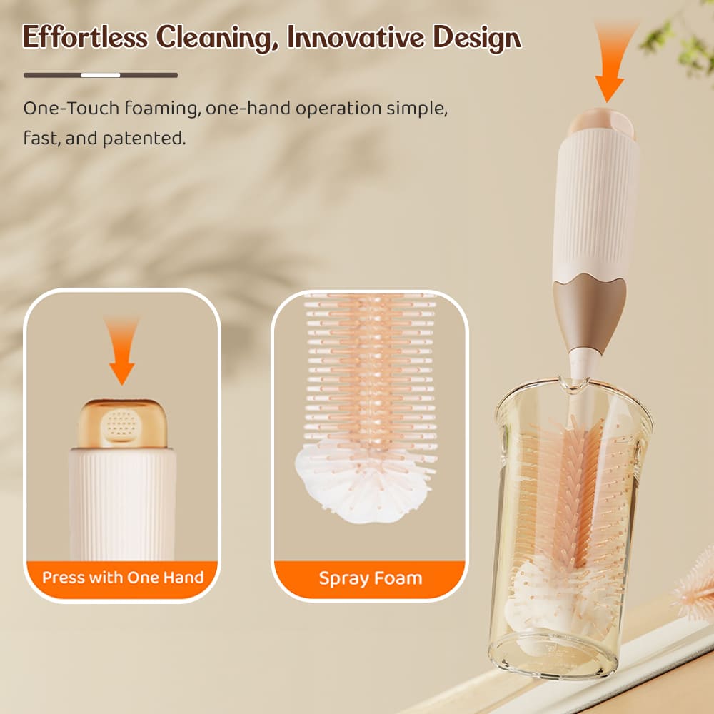 - 360° Cleaning Brush: The brush features a 360° rotation capability, allowing for comprehensive cleaning of every corner of the bottle, even those difficult-to-reach areas.