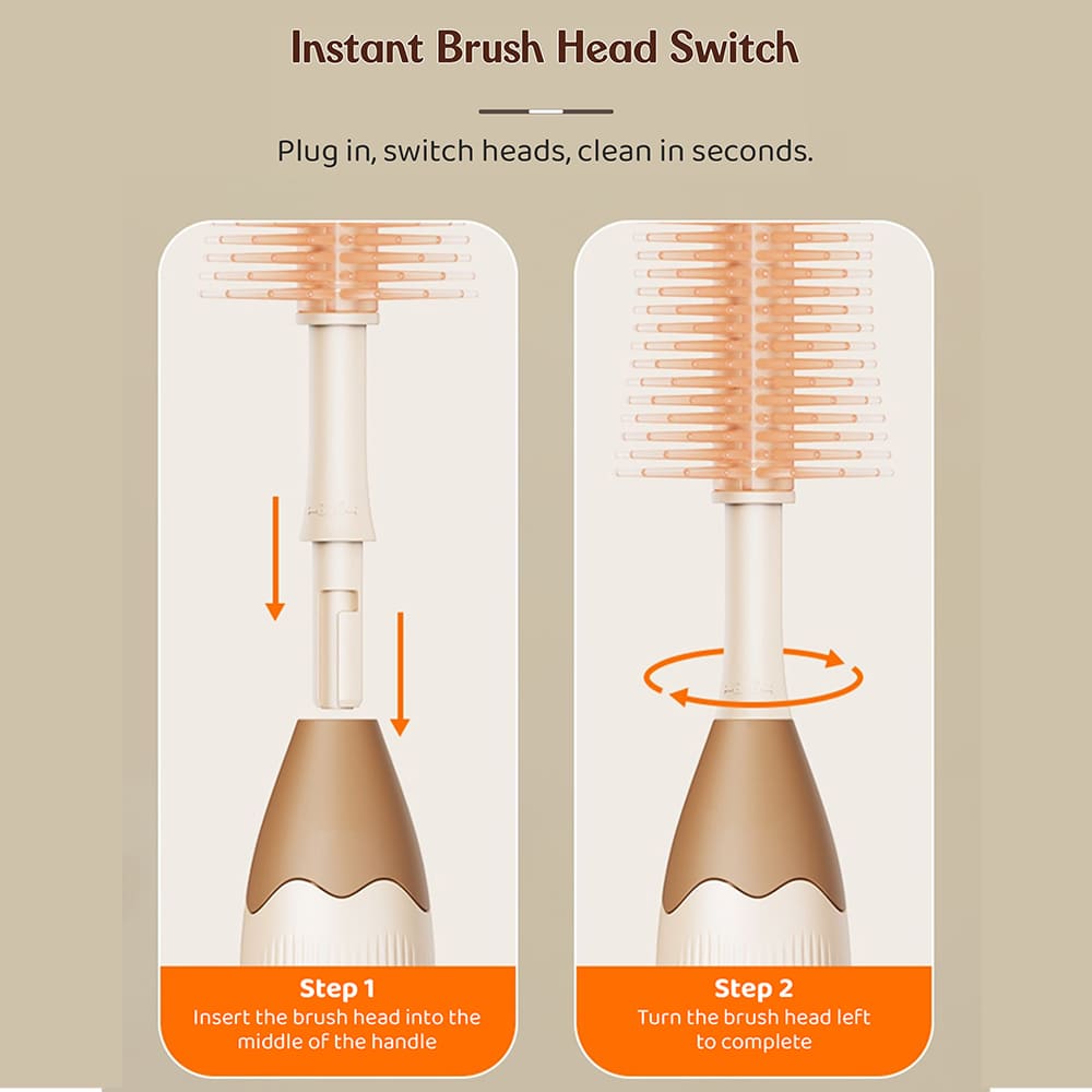 - Special Nipple Cleaner Attachment It comes with a smaller brush attachment specifically designed for cleaning bottle nipples and pacifiers, making sure every part of your baby’s feeding gear is hygienic.