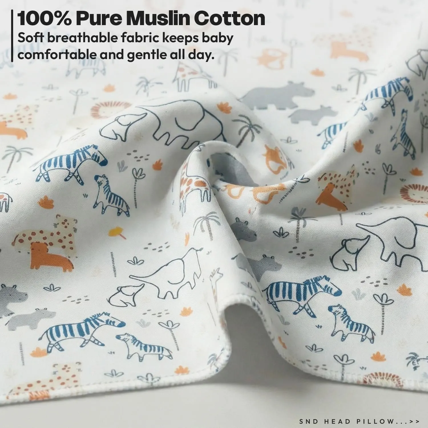 StarAndDaisy Baby Head Pillow, Breathable Cotton Infant Head Shaping Pillow with Ergonomic Neck Support for Newborns – Jungle Print