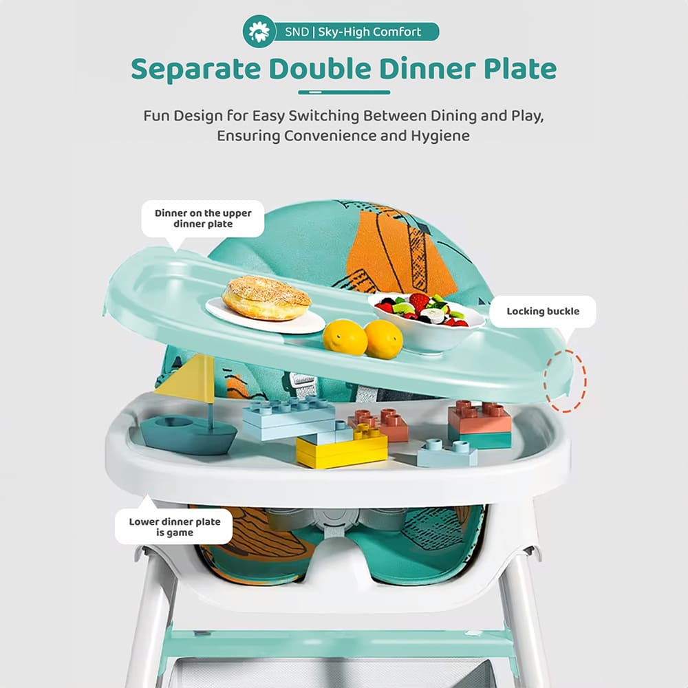StarAndDaisy Basic Table Talk Infant Feeding High Chair without Wheels, Detachable Food Tray, & 5-point Safety Belt – Printed Blue
