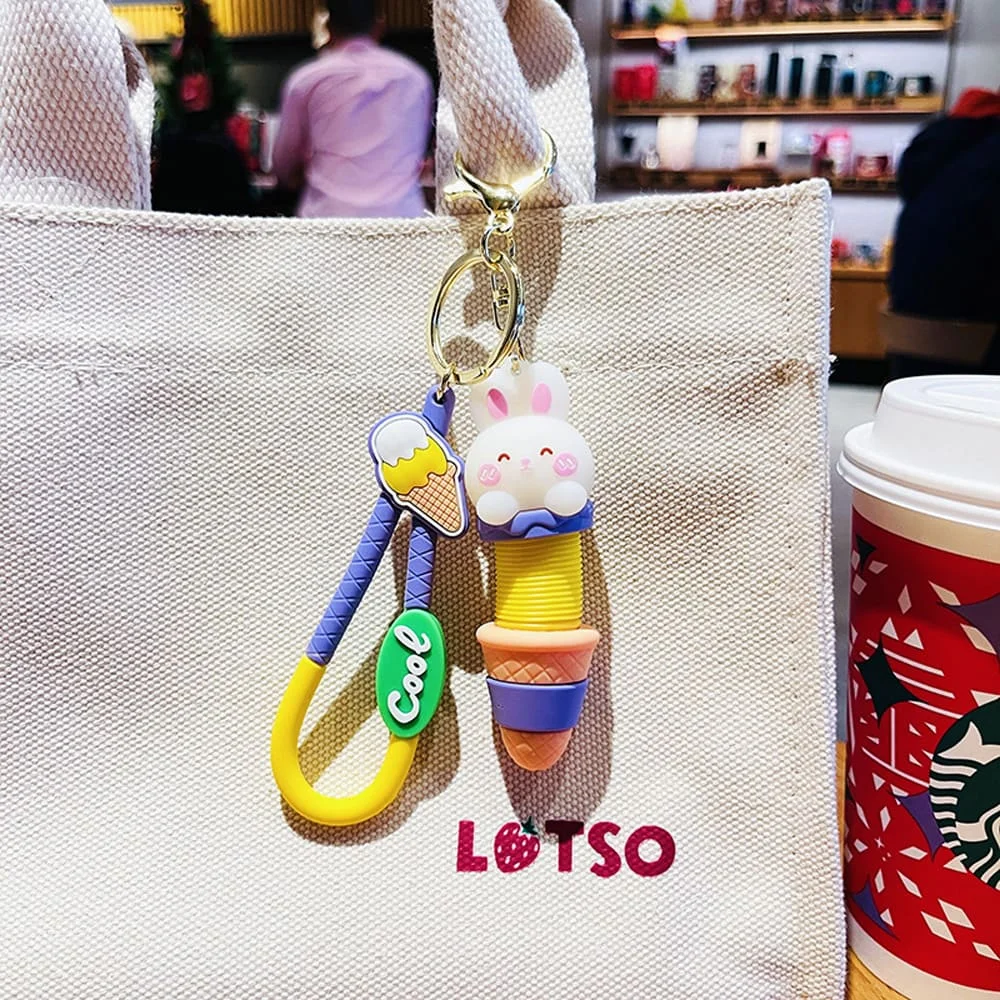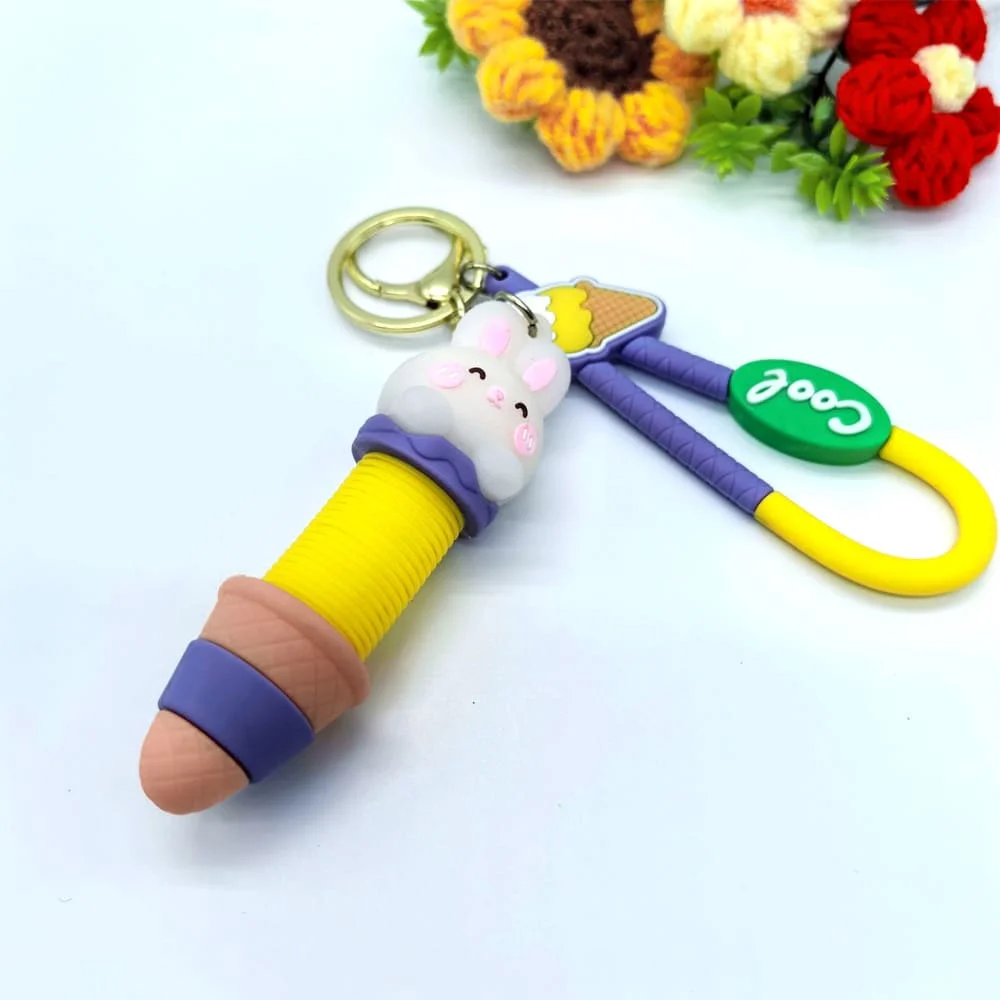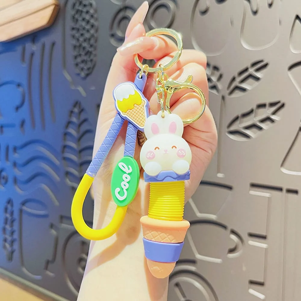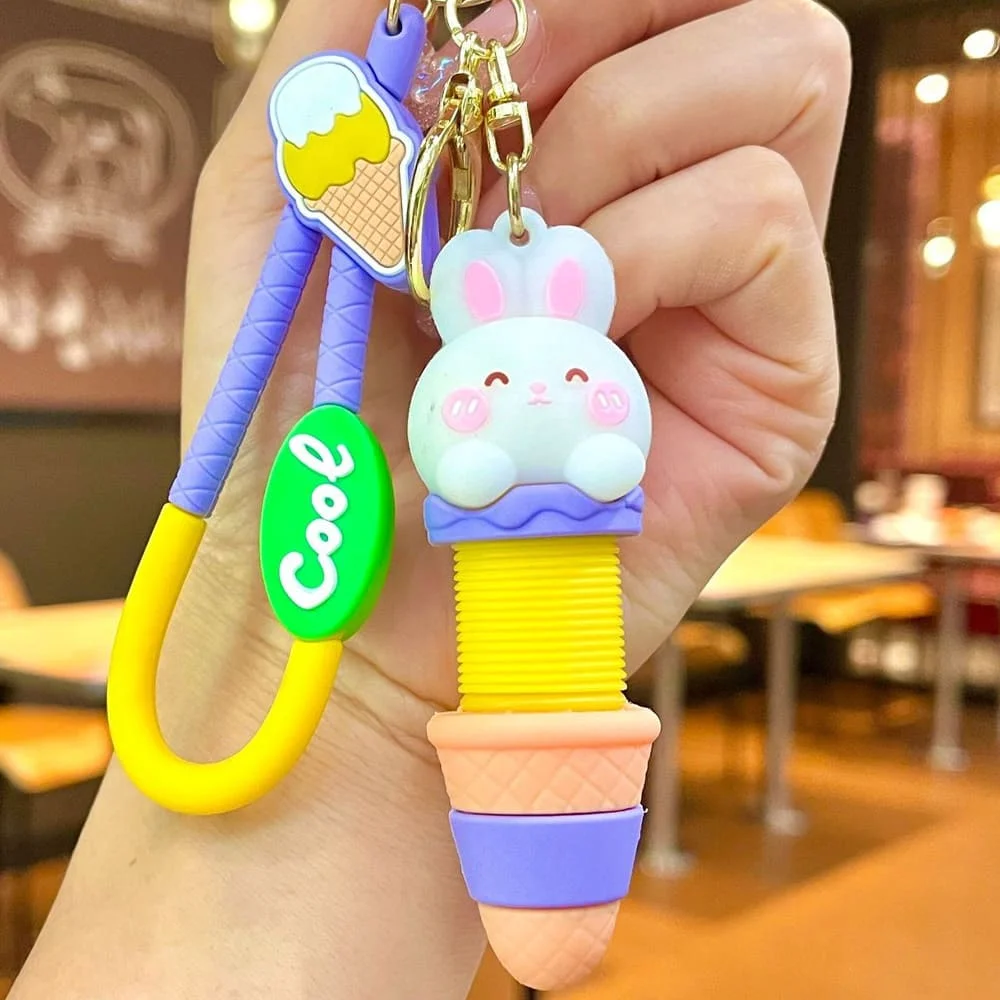 Bunny Expandable Keychain, Cute Ice Cream Cone Design, Stretchable Fidget Key Ring for Bags, Backpacks and Gifts, Assorted Color – (Pack of 10)
