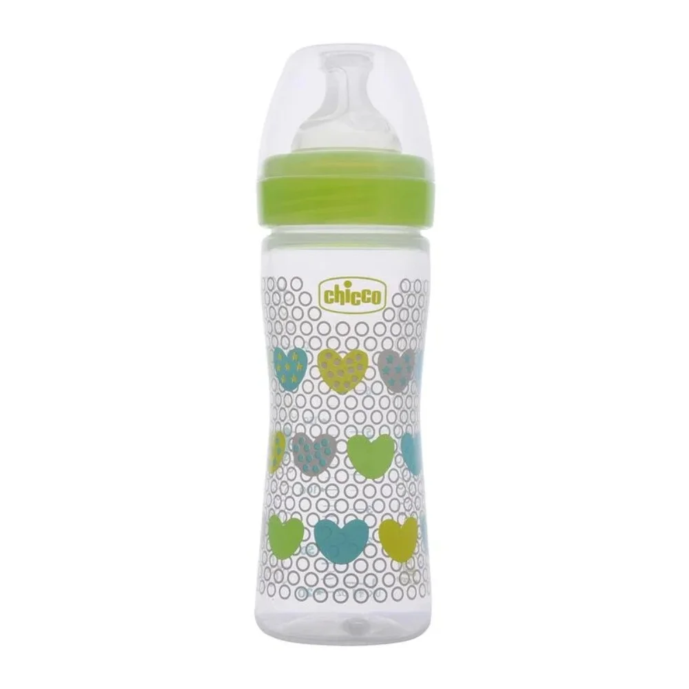 Chicco Well-Being Feeding Bottle 250ml (Medium Flow) in Green is the perfect choice for a relaxed and comfortable feeding experience. Designed to protect babies from colic and regurgitation, the bottle features the New Advanced Soft Silicone Physio Teat that provides a natural mum-like feel and supports easy transition between breastfeeding and bottle-feeding. Suitable for babies aged 2 months and above.