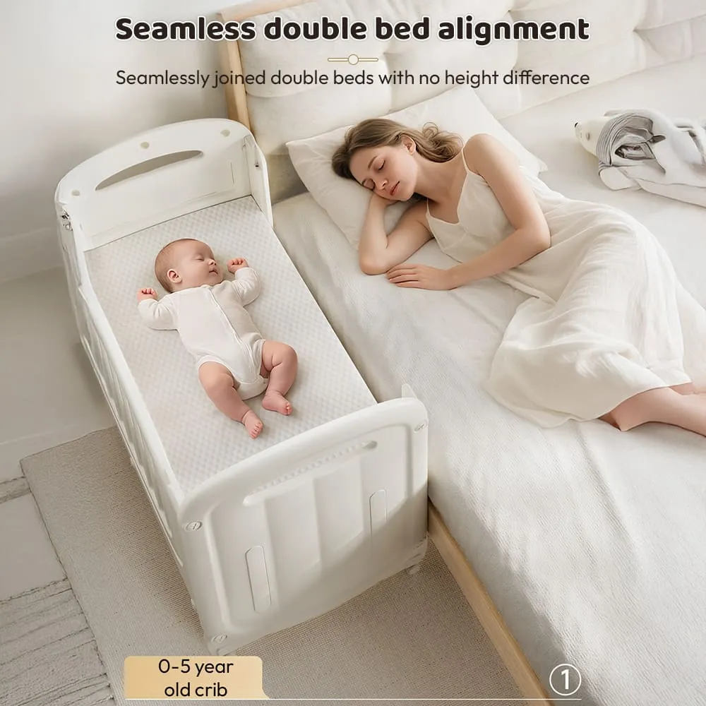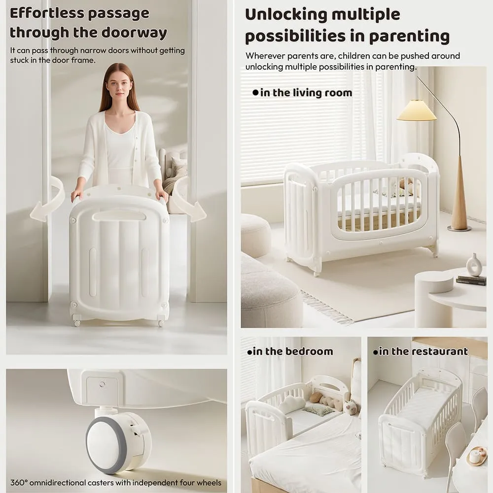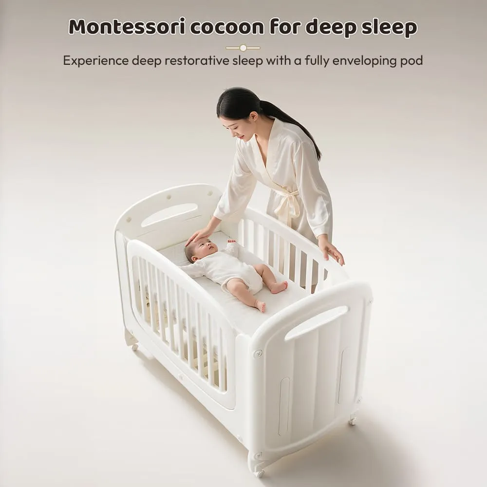 StarAndDaisy Dreambud Baby Cot Crib Bed for 0–5 Years Convertible Portable Crib with Montessori Cocoon Design, HDPE/ Latex – White