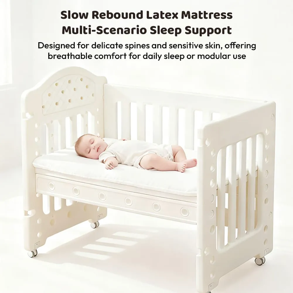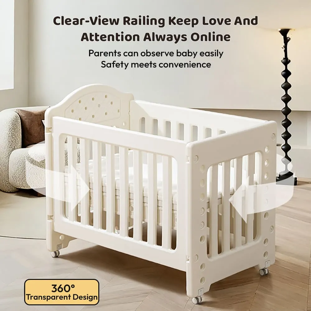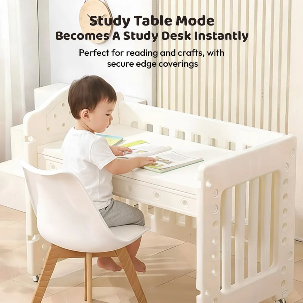 StarAndDaisy Tiny Dreams 4-in-1 Convertible Baby Cot Crib with Adjustable Height, HDPE Safe Material – White