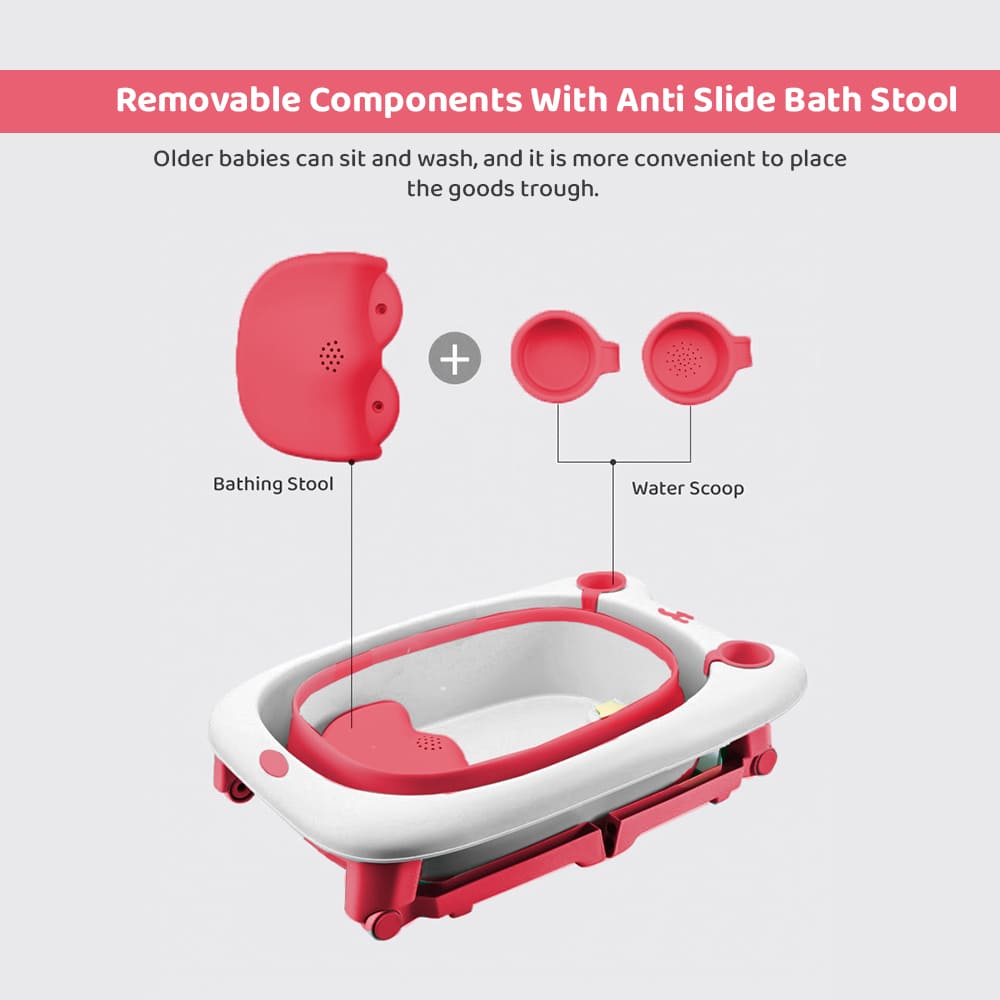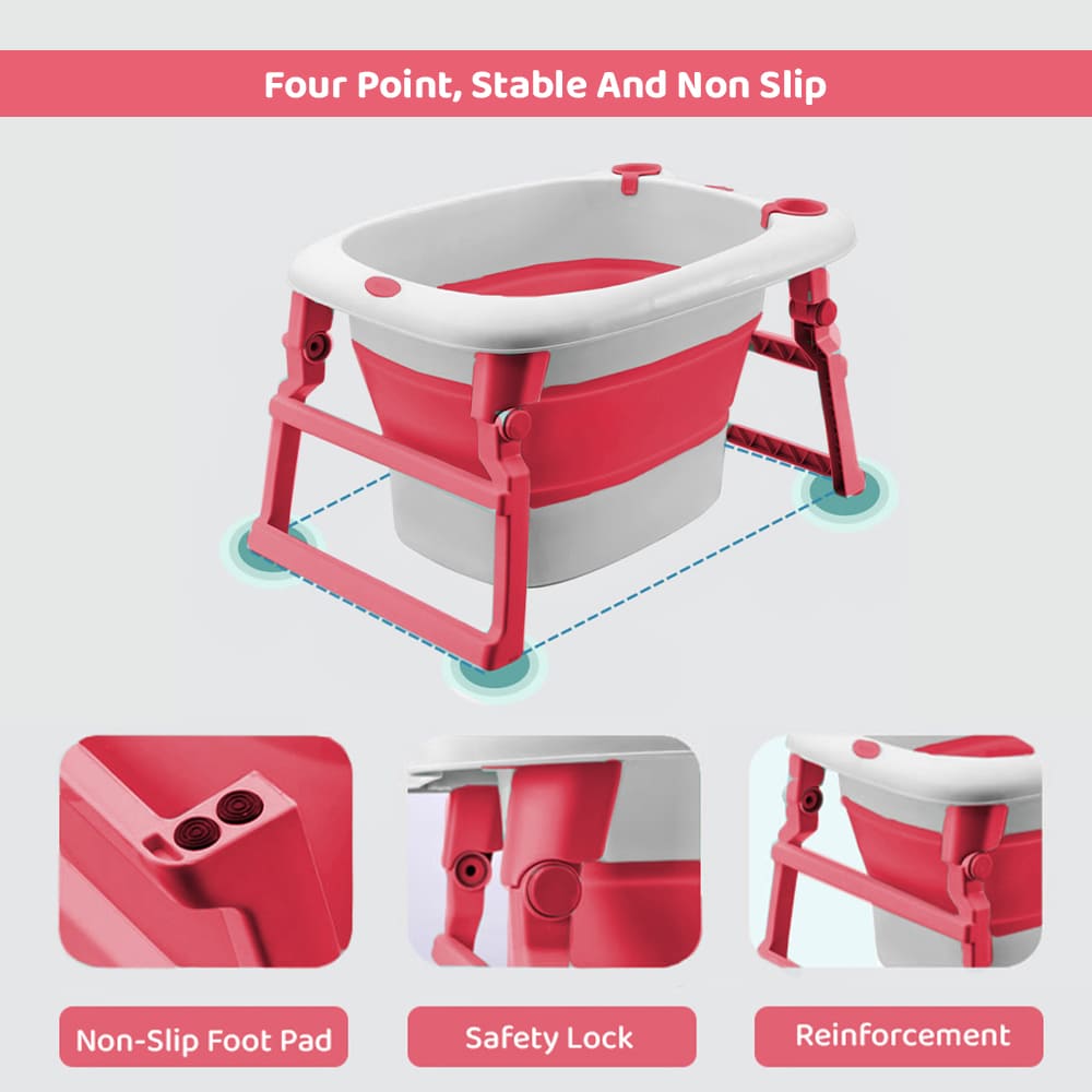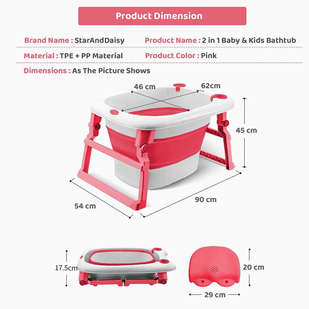 Collapsible Bath Tub For Newborn – Baby Vertical Bath Tub with Stool, Newborn Comfort to Toddler Fun (Pink) – StarAndDaisy